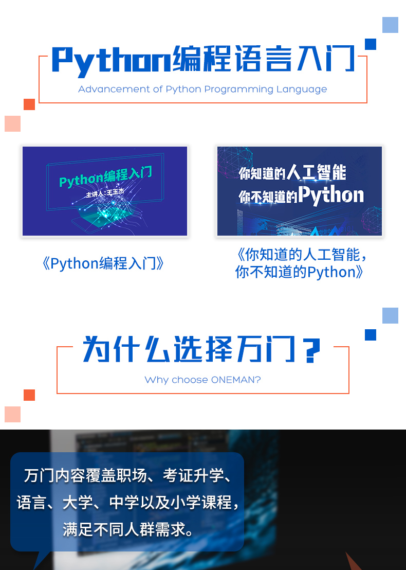 【万门教育】编程语言入门,深度探索让编程变得更简单,强化学习算法,提高工作效率,探索人工智能的潜力,基础理论+实战技能进行项目设计,帮助你学以致用。