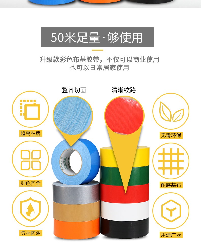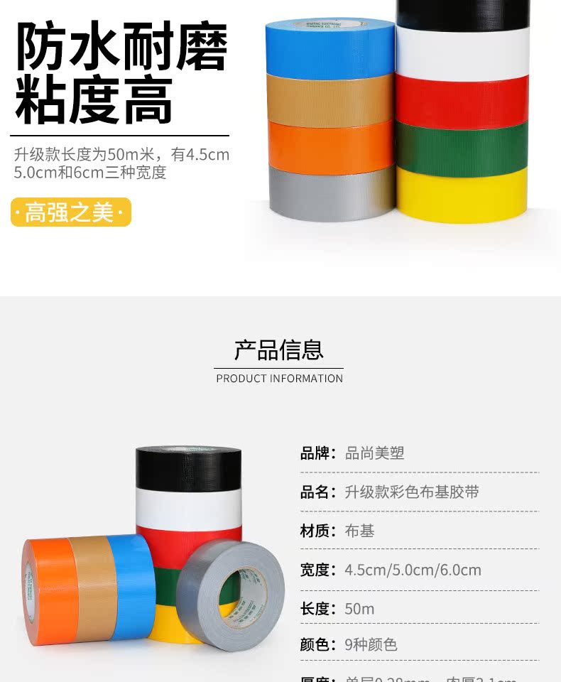 【品尚美塑】高粘度彩色布基胶带,适用于多种场景,超高粘度,防水耐磨。采用进口荷兰布基和马来西亚原胶,好品质,你值得拥有~~~
