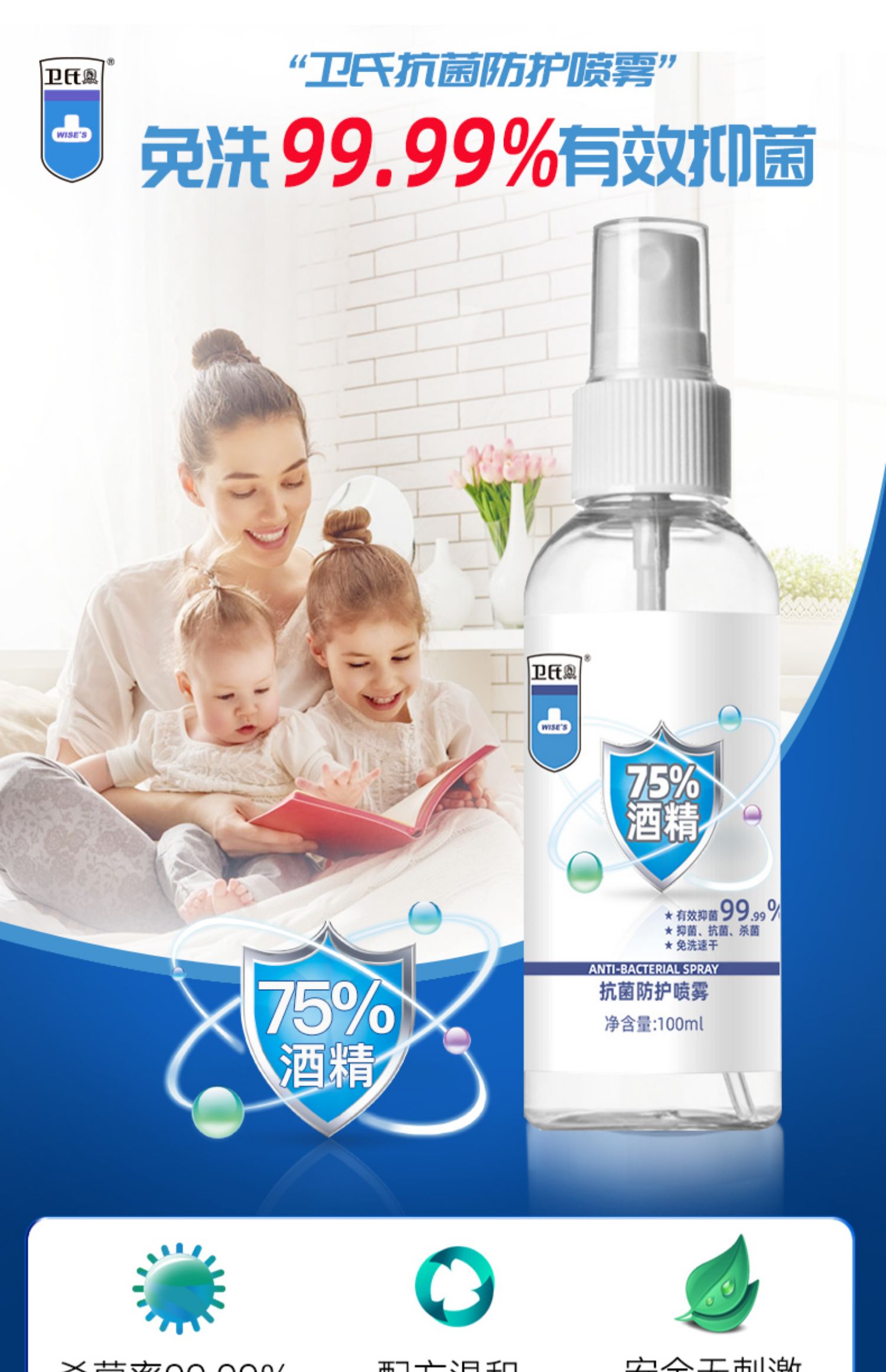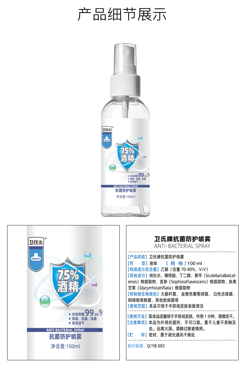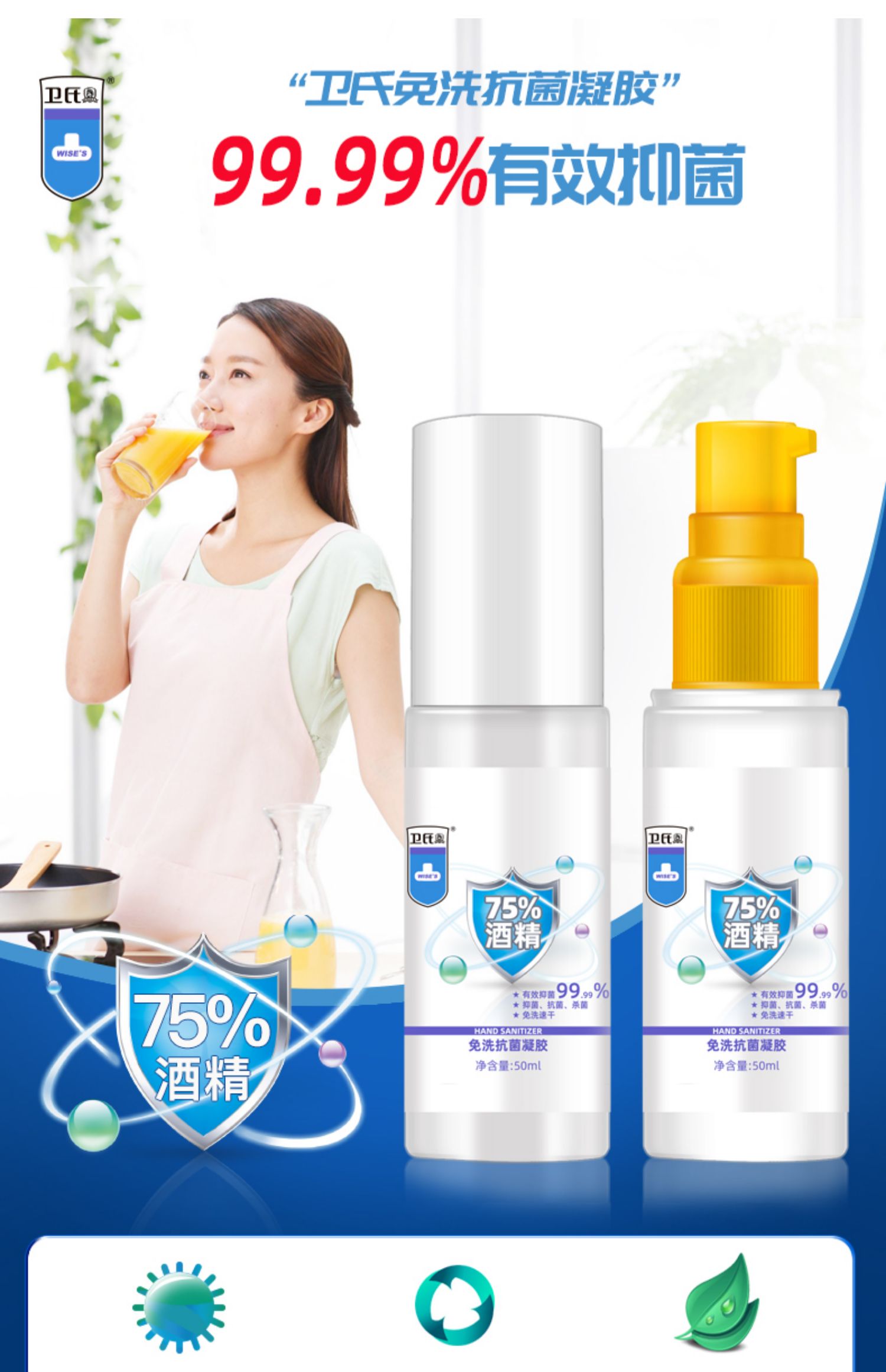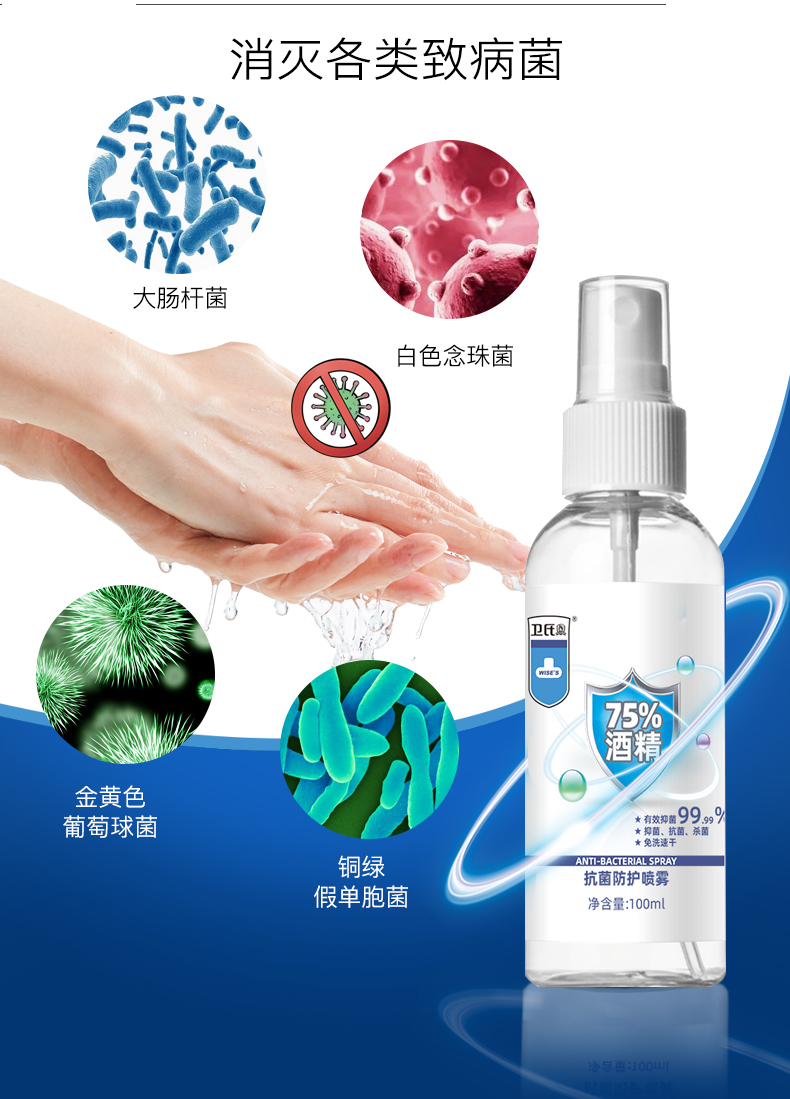 卫氏免洗抗菌50ml消毒喷雾杀菌凝胶