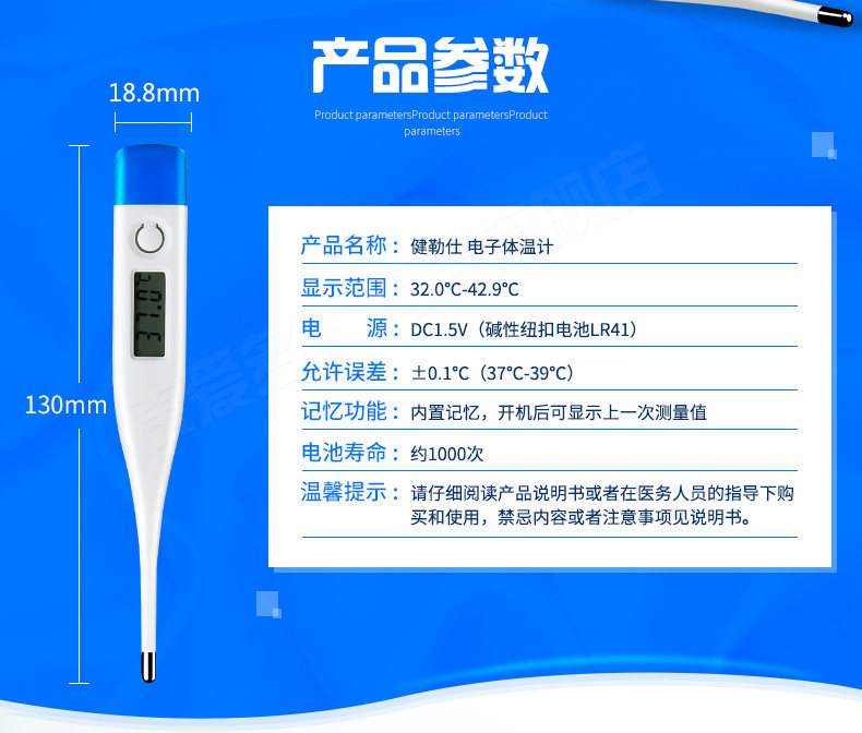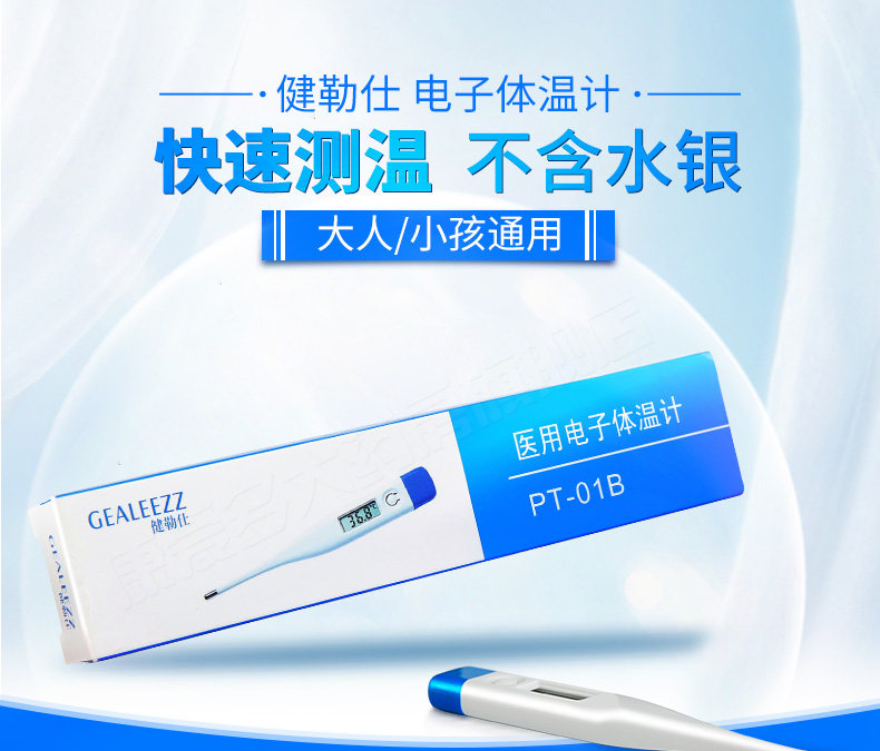 【健勒仕】电子体温计1支,健勒仕电子体温计,不含水银,60秒快速测温。三种测温方式,可测腋下,口腔,蜂鸣提示,自动关机,LCD大屏清晰易读,灵敏感温,方便携带,居家开学必备!