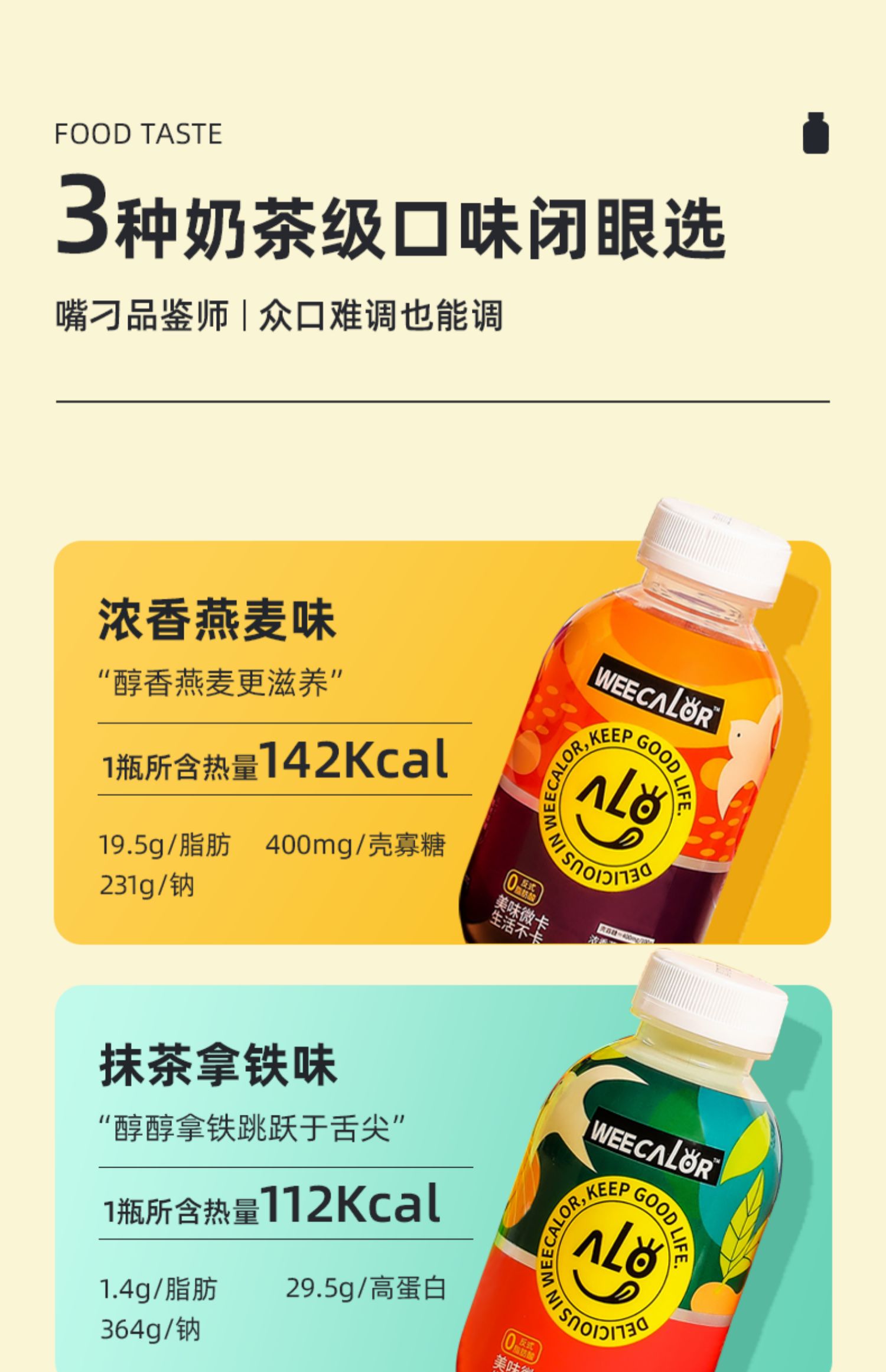 【爆款回归】weecalor燕窝肽代餐奶昔,3种奶茶级口味随机发,1瓶奶昔解决一顿饭,合理控卡,高蛋白,高纤维,奶茶口感,好喝美味!