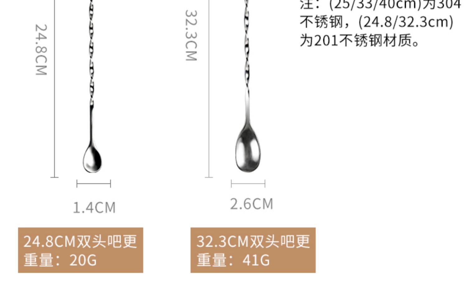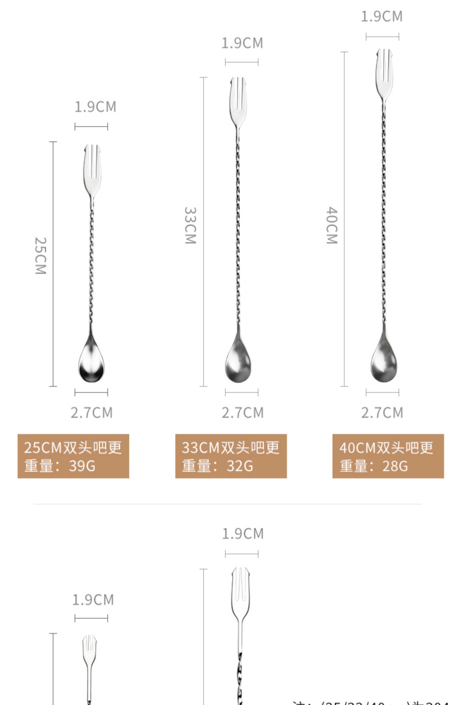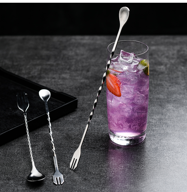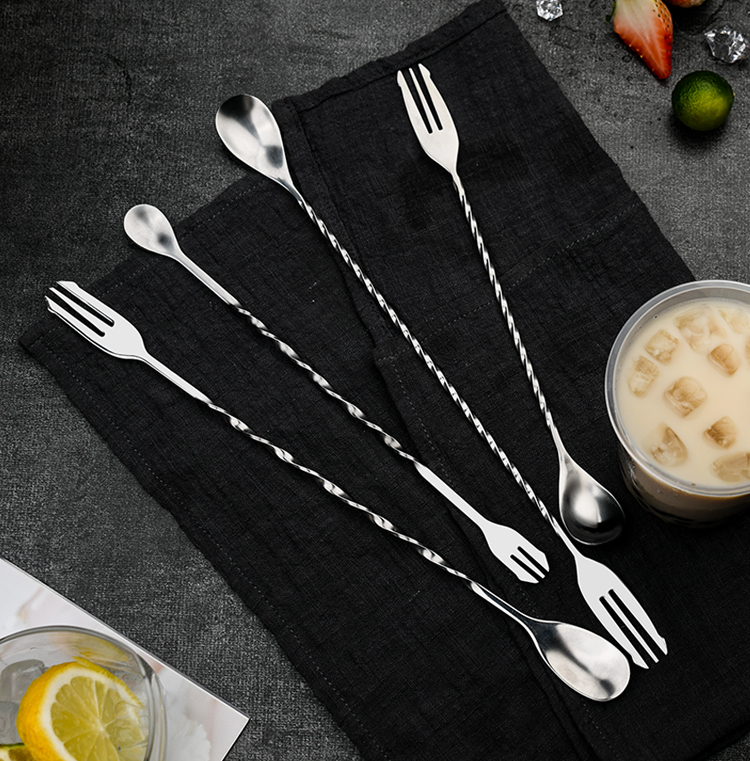 【唐雅】304不锈钢双头吧勺搅拌勺,一体成型,旋螺花柄,一勺两用,结实耐用,多种款式可选,可用于调酒、奶茶咖啡搅拌,加长勺柄更方便。