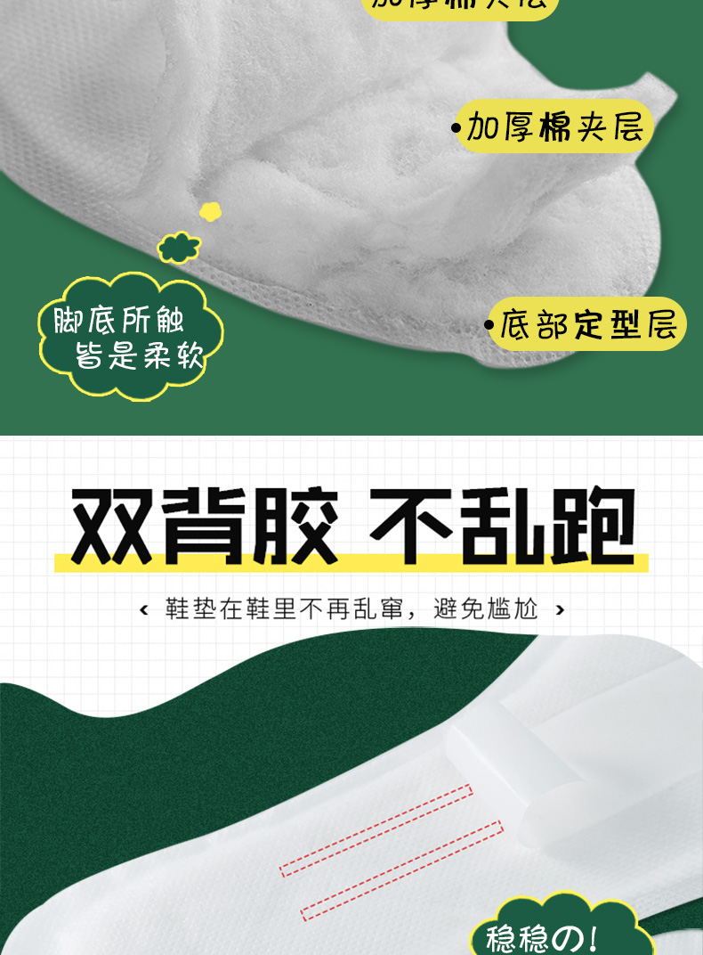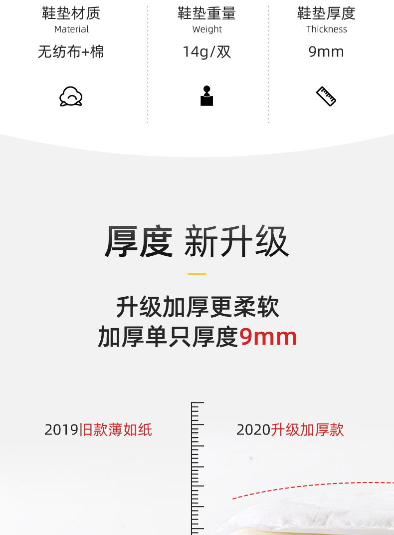 升级款,双层加厚柔软,不怕出汗,瞬息速干不闷脚,加质不加价,有了它,无惧硬鞋底,告别久站训练痛苦~