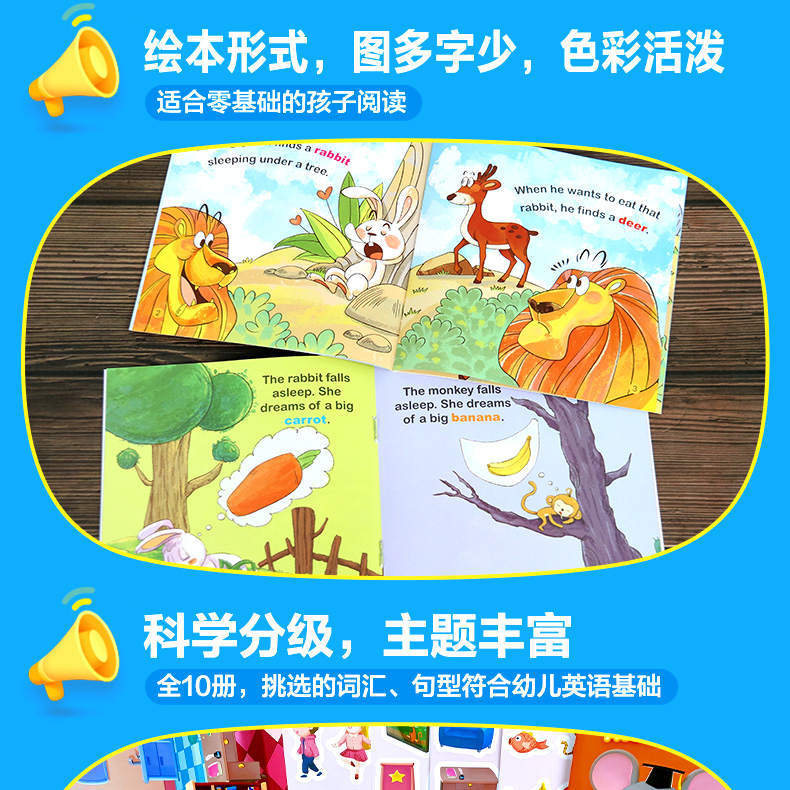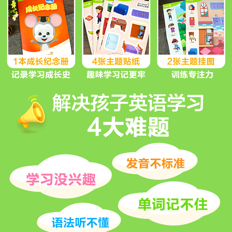 【广东人民出版社】下单就送包邮大礼包,含10册英语绘本,12张单词卡,1本成长纪念册,4张主题贴纸,两张主题挂图。还有10节英语启蒙课,14天专业一对一辅导。抓住孩子英语的学习黄金期,让孩子赢在起跑线