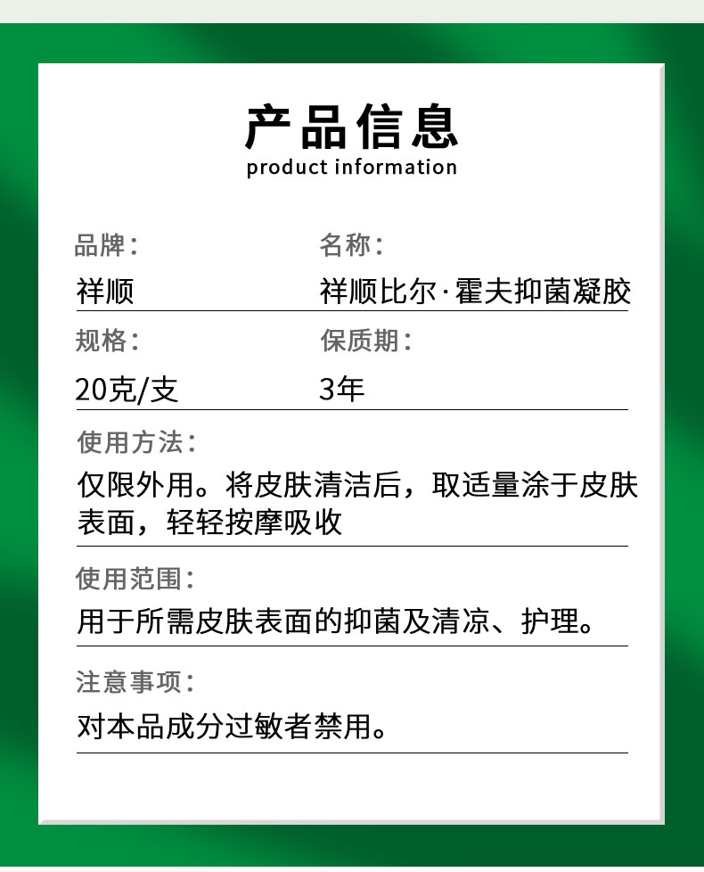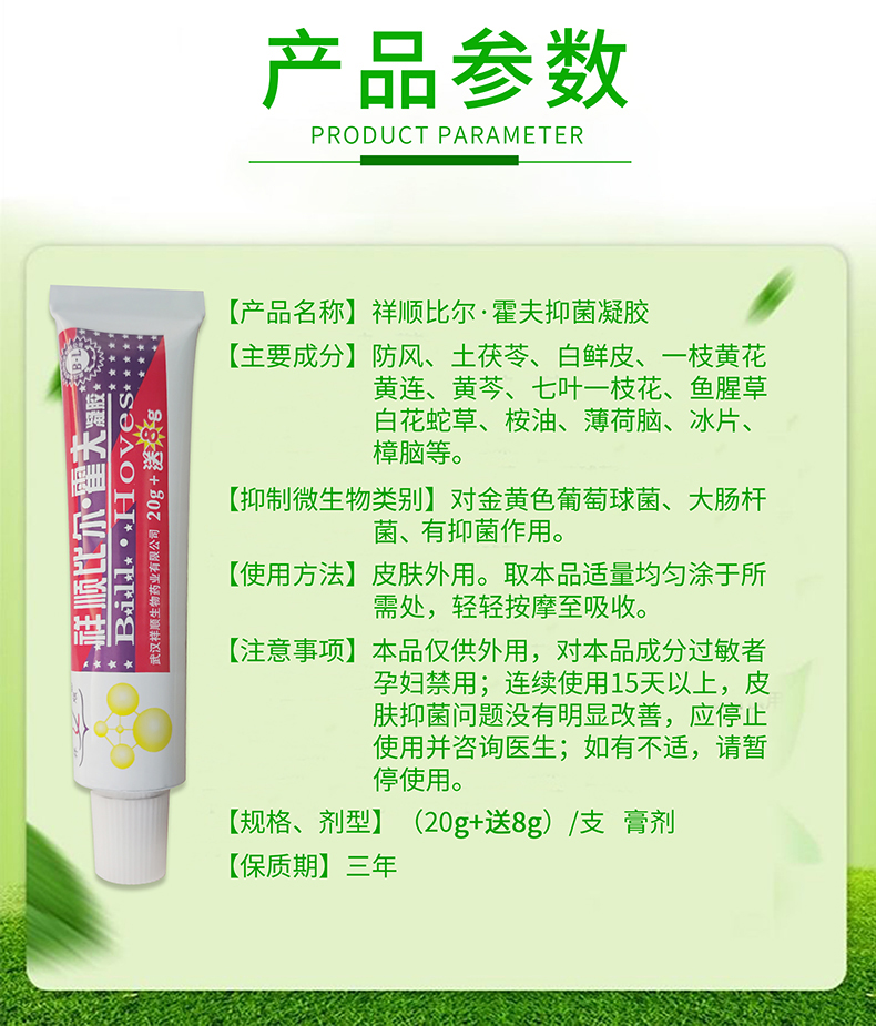 【赠运费险】告别皮肤不适~祥顺比尔霍夫抑菌凝胶,提取天然植物精华,清爽无异味,温和易吸收,轻松解决各种皮肤问题,呵护你的皮肤健康,20g,只需5.1元!