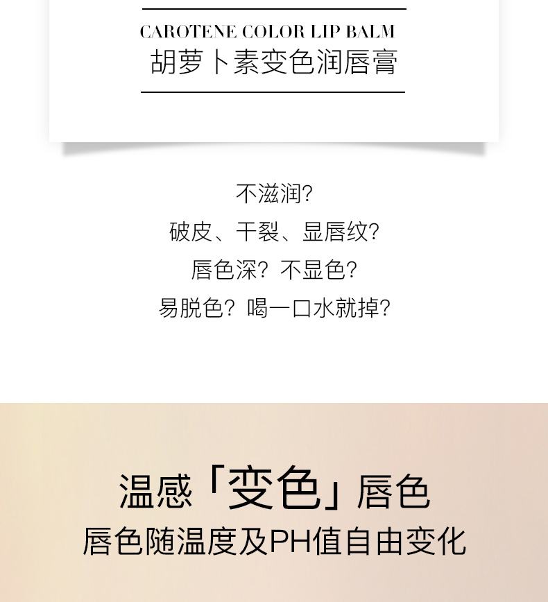 食品级天然胡萝卜素,孕妇可用,滋润双唇,淡化细纹,改善唇色,温感变色,千人千色,打造你的专属色彩【赠运费险】