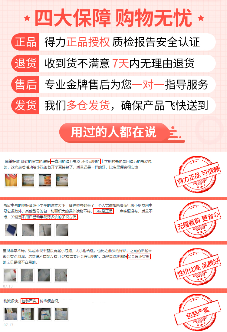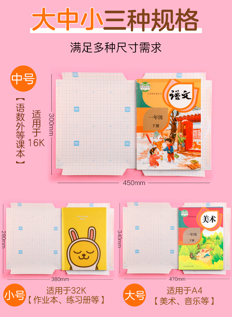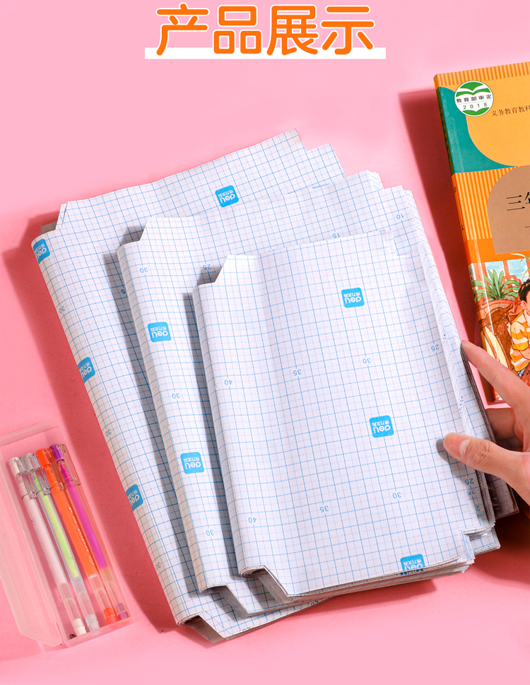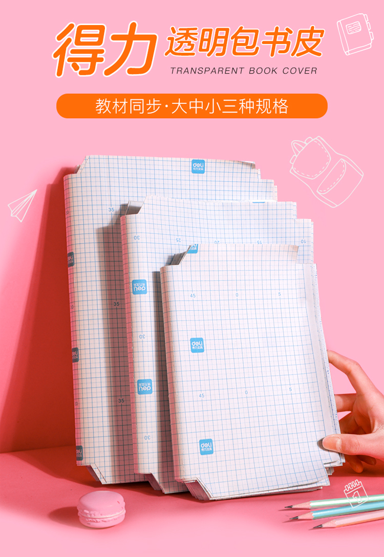 【得力31年品牌】安全CPP材质,安全守护,适用初中、小学大部分课本,16K切角,无需裁减,省时省力,一步到位~