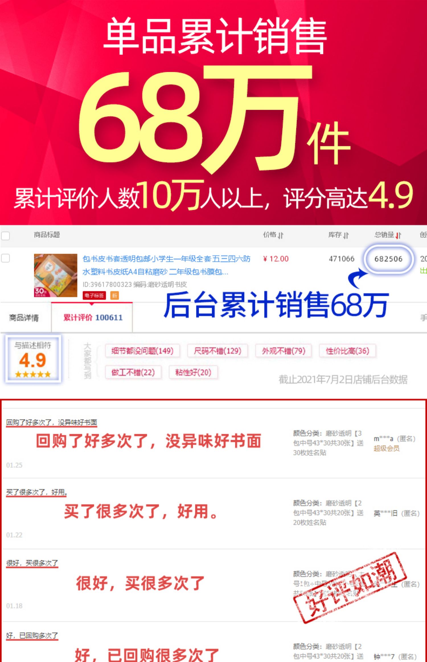 【开学必备】开学早准备,大中小规格齐全,PP材质磨砂防水,活动粘胶条设计,防水耐用免裁剪,自黏式一体化,安全方便包书膜,轻薄耐用,使用便捷。