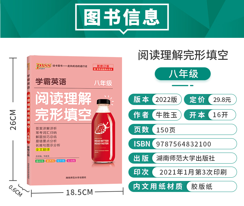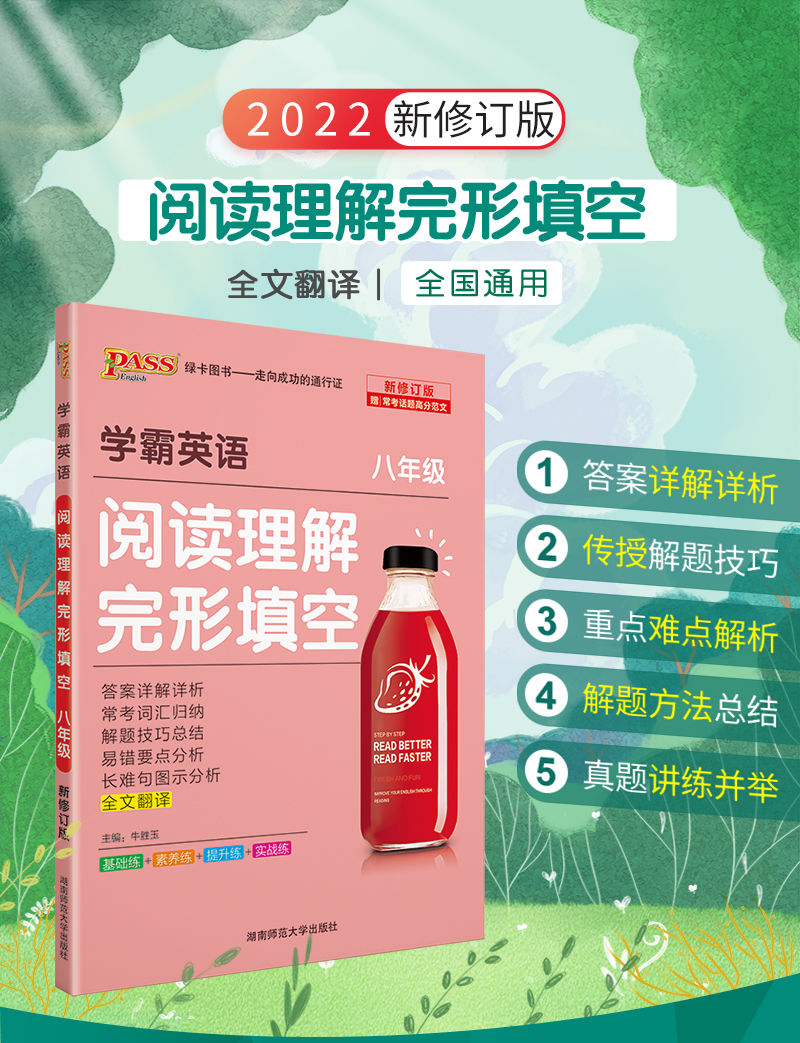 八年级阅读理解专项训练书,学霸英语阅读理解与完形填空初二上册下册一本全,八年级必刷题英语完形填空英语专项训练阅读,提高孩子的英语水平!【赠运费险】