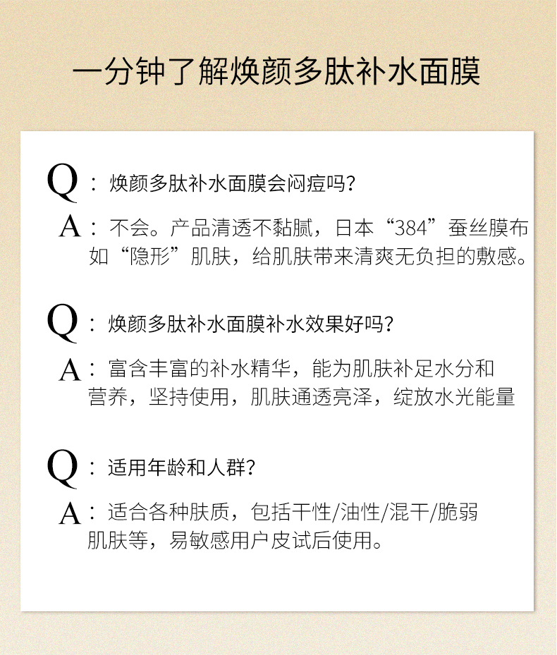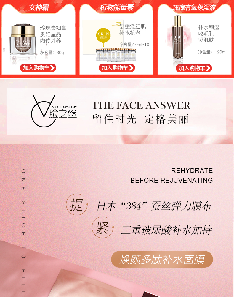 SPA级补水,亮肤实力派!叶璇代言~V脸之谜补水面膜!日本弹力蚕丝膜布+三重玻尿酸加持,深度补水,滋润肌底!敷出水润嘭弹好肌肤