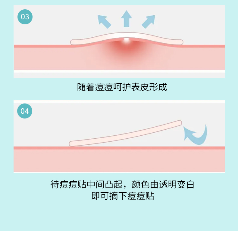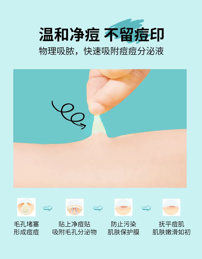 日本进口配方,24小时持久修护,加速创口愈合,一觉醒来,痘痘一扫光! 隐形服帖,物理吸脓,弱酸PH值,温和净痘,清凉更健康,隐形防汗,告别贴敷不适感~