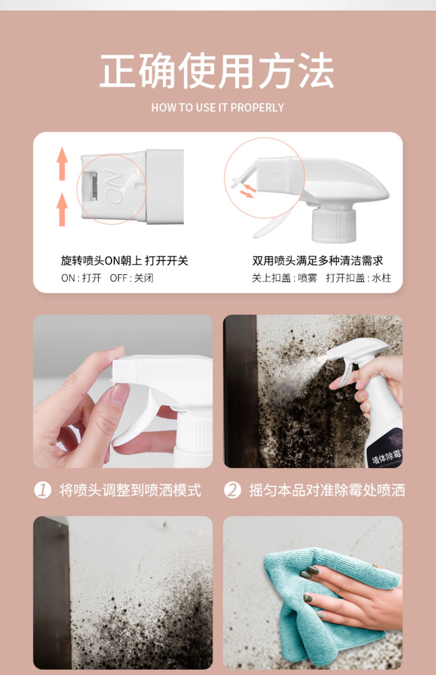【60秒告别霉菌,500大瓶装的,多场景适用】双喷头更高效!60秒除霉效果看得见,添加抑菌剂,不易复发,不伤墙壁,有效祛除顽固污渍~快速除霉10分钟,居家好能手