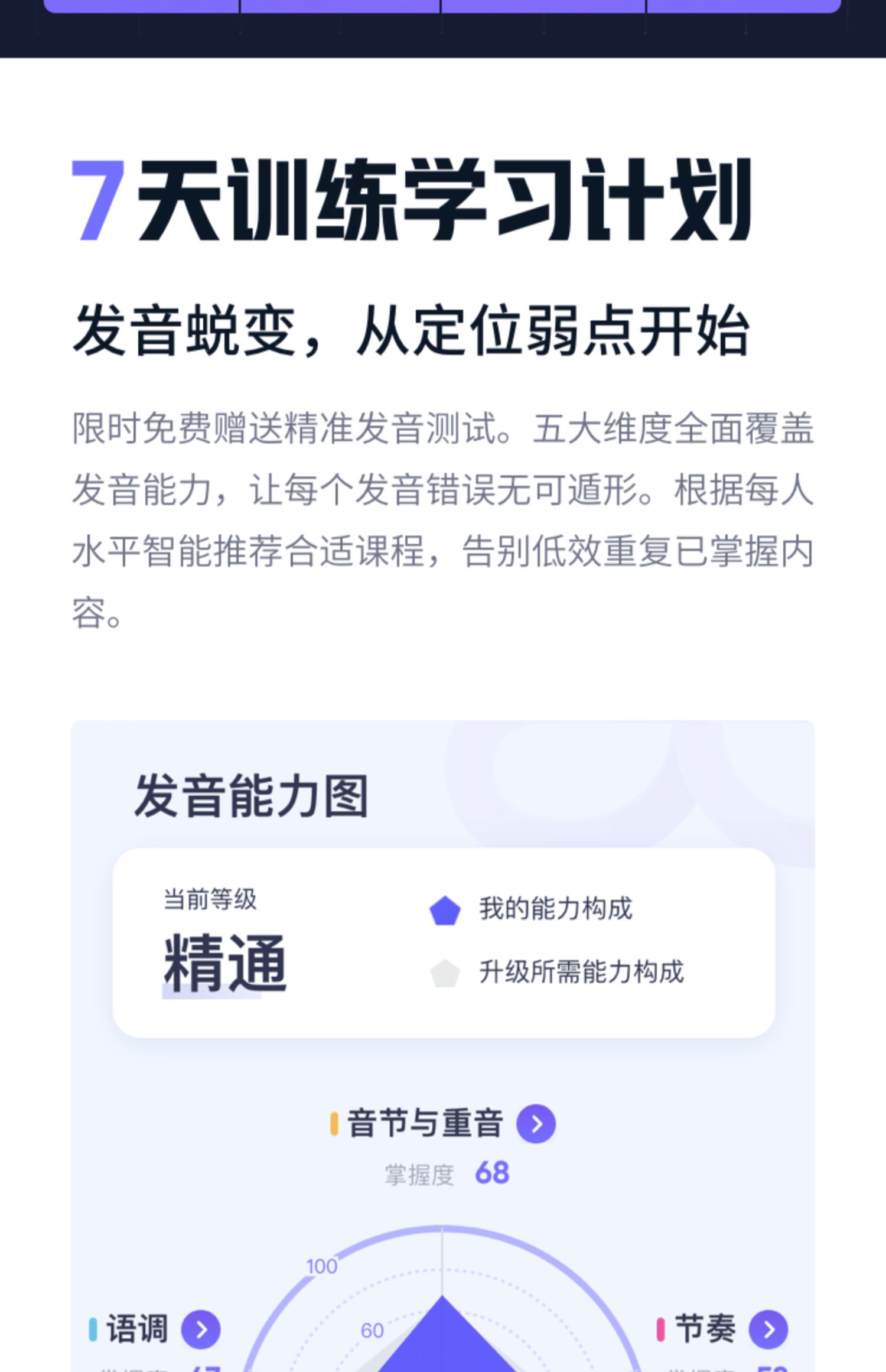 【兑换课程后可加服务群,班主任在线答疑督学】英语流利说口语发音AI训练学习网课,发音蜕变,从定位弱点开始,使用准确的人工智能语音识别算法,记录你的点滴进步。