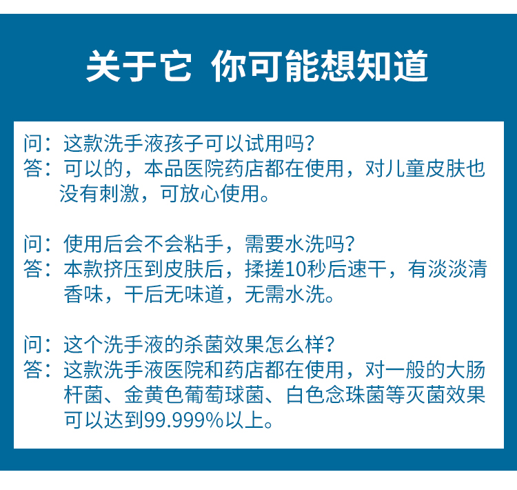 品质安心,不含酒精,持续抑菌,免洗速干,温和不致敏,泡沫绵密,清爽不粘腻,孩子可以放心使用;小巧便携,抑高达99,随时随地消毒~