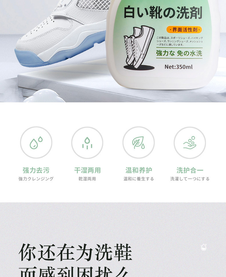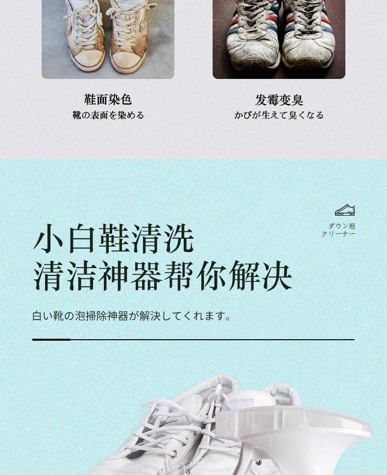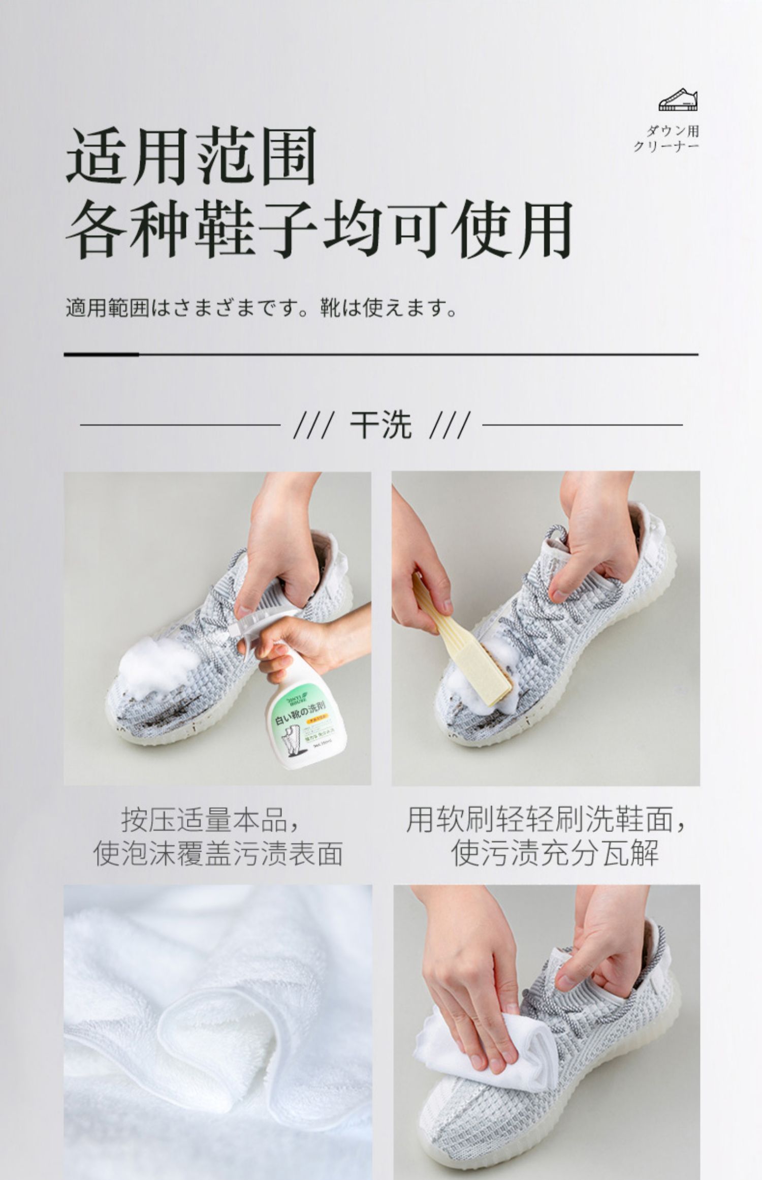 小白鞋清洗剂,洗鞋神器,懒人必备!运动鞋、帆布鞋、小白鞋都能用,自带刷头,不伤鞋轻松去除污渍,全方位清洁无死角!防止霉变,免水洗一擦就干净,方便又快捷!