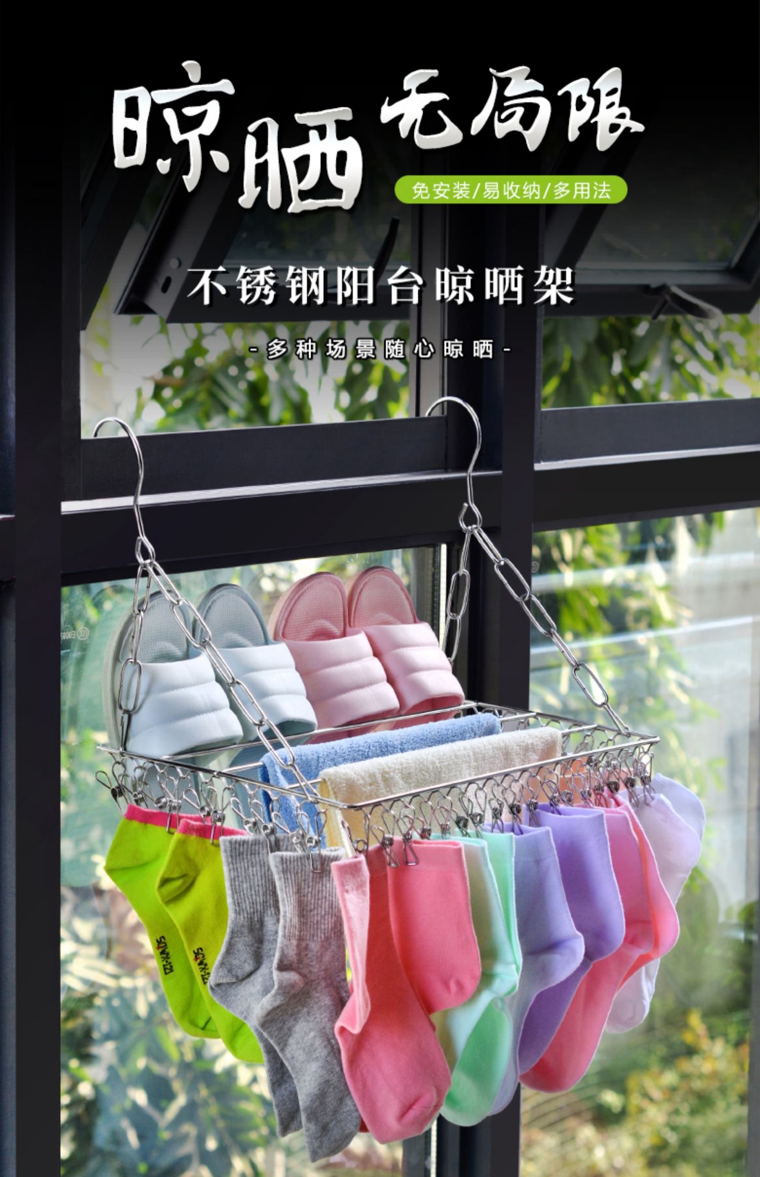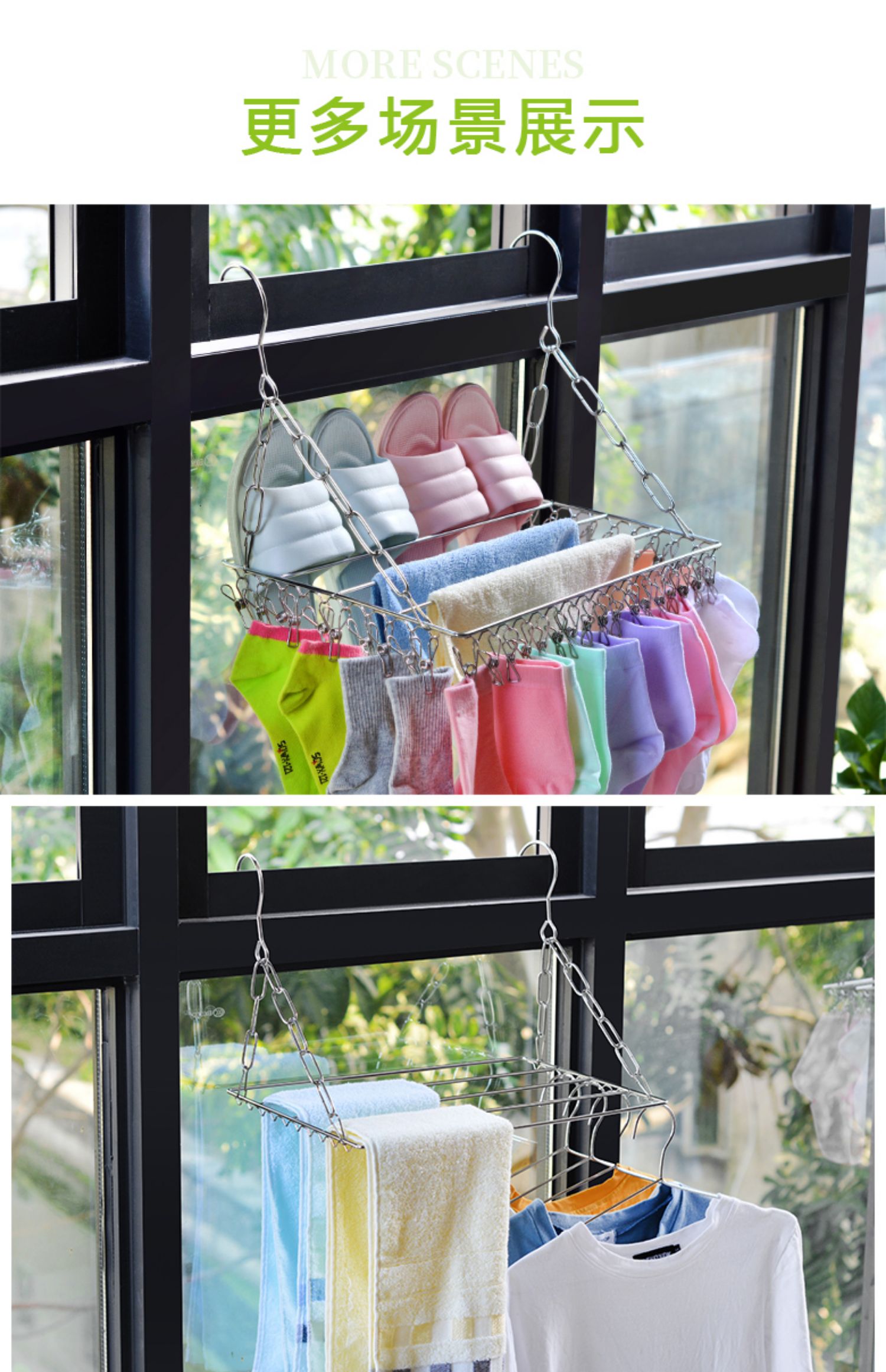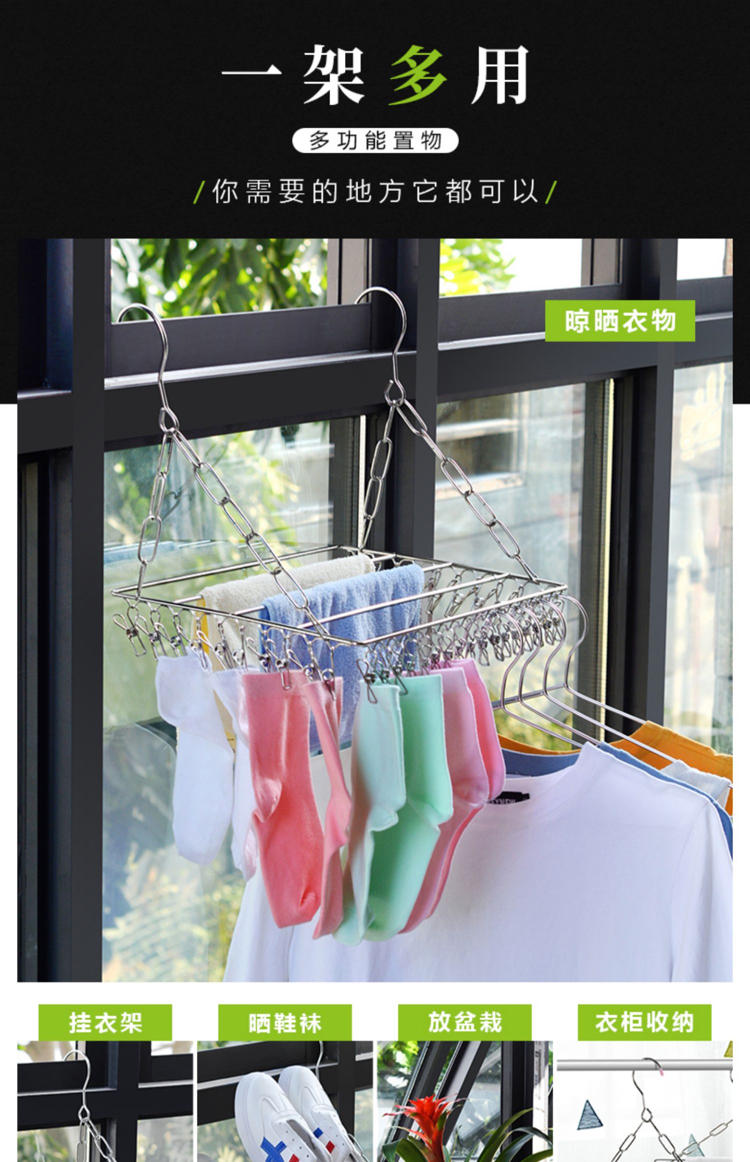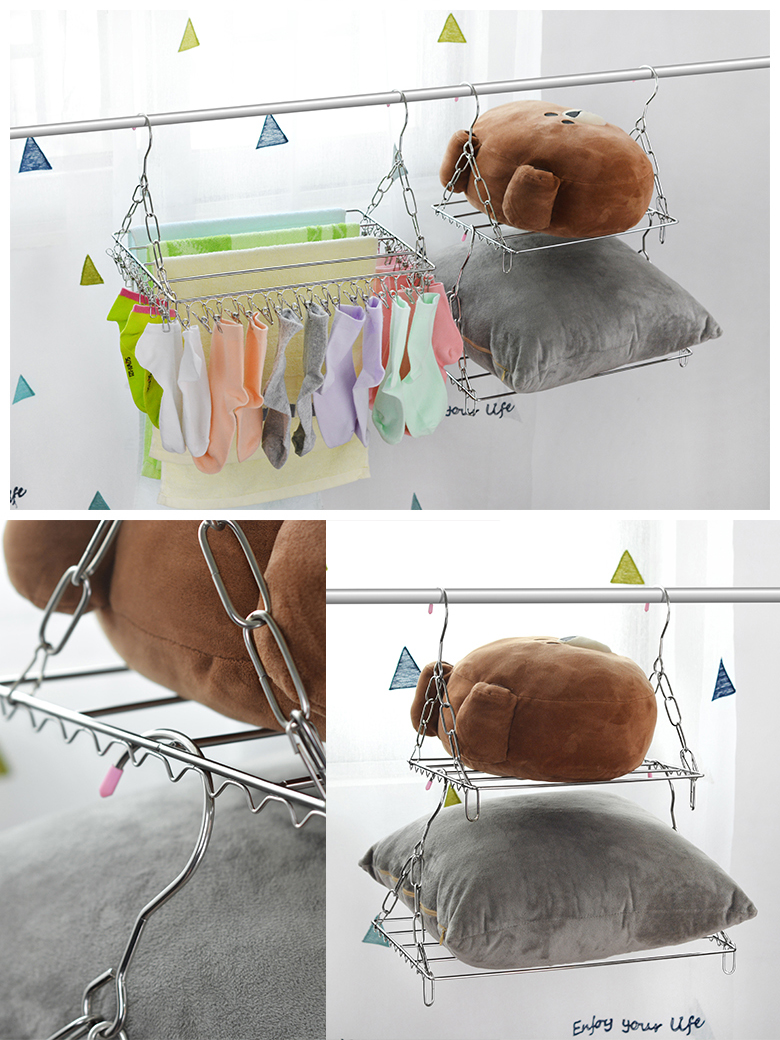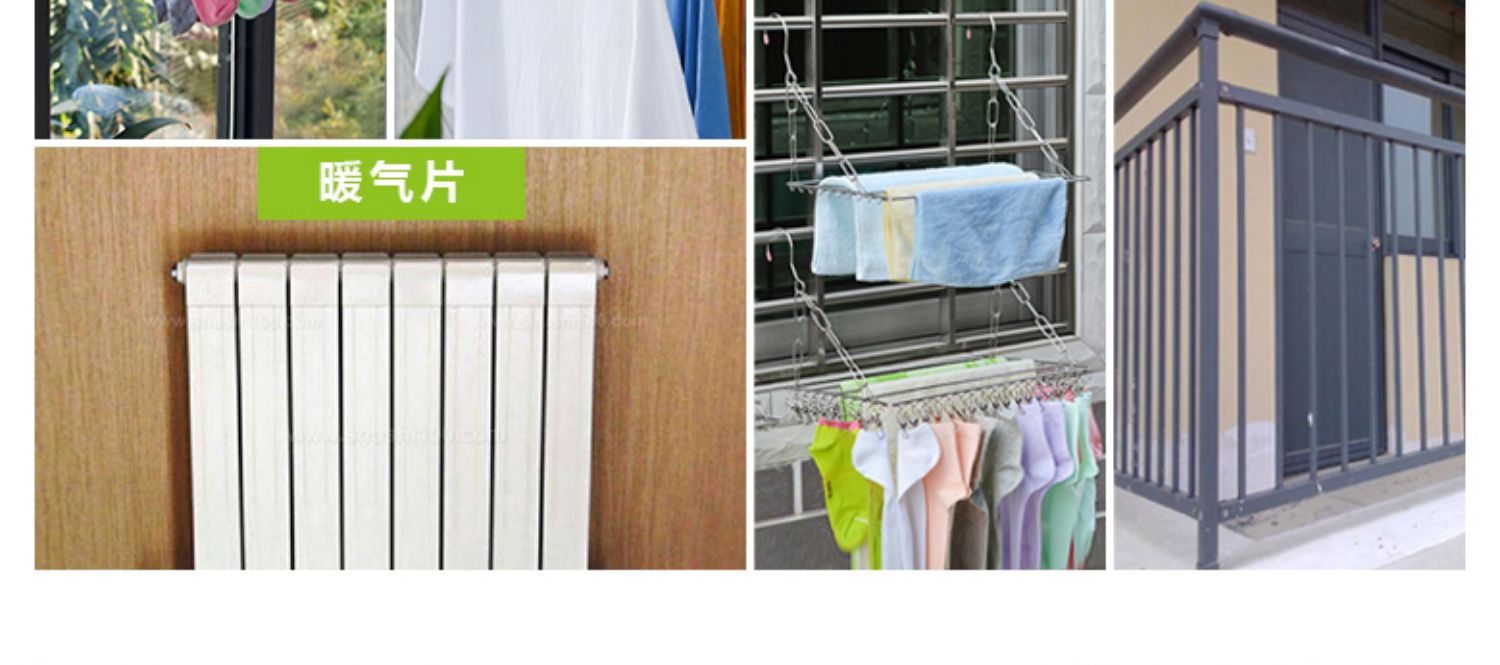【晾晒神器】可承重15公斤,多种挂法!不锈钢材质,选用加厚实心钢材,焊接稳固,不变形,耐高温不生锈,结实耐用,晾内衣、晾袜子,全部搞定~居家必备晾晒神器~秒杀价9.9元包邮!