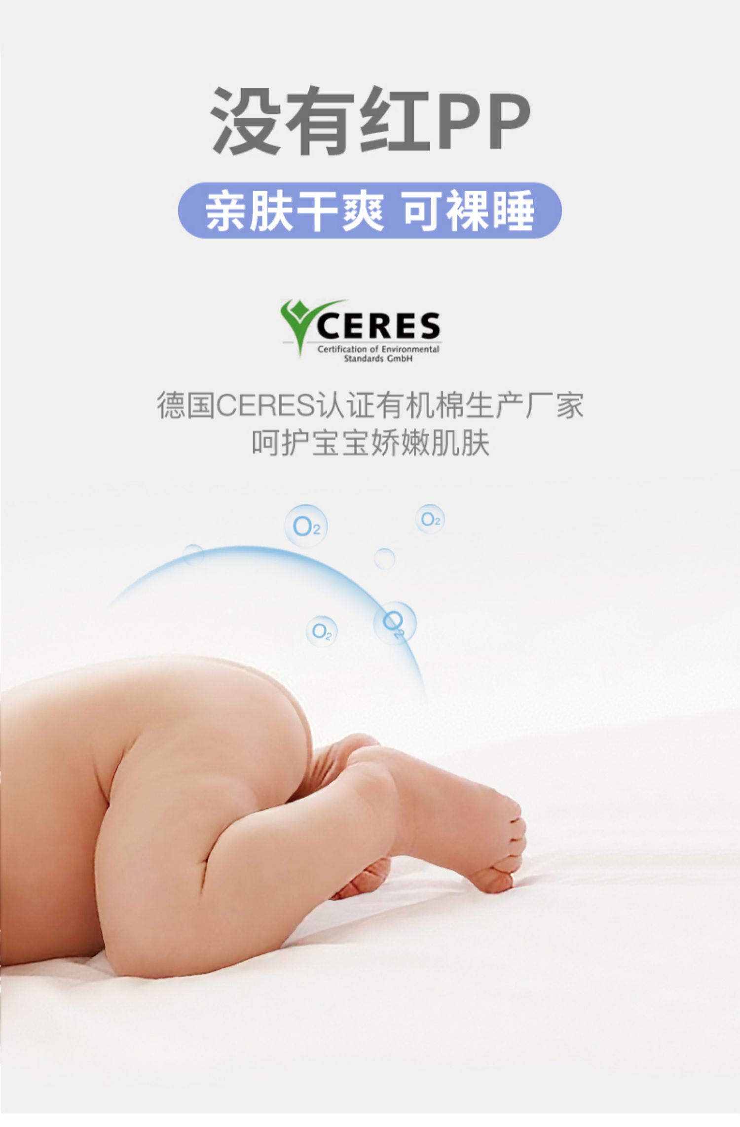 【德国认证有机棉,宝宝没有红PP】A类产品,无甲醛、无荧光剂、无印染,可反复机洗不变形。不仅宝宝适用,女性夜间生理期也可轻松应对哦!