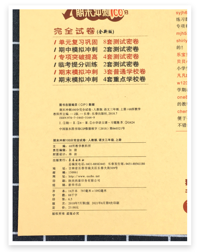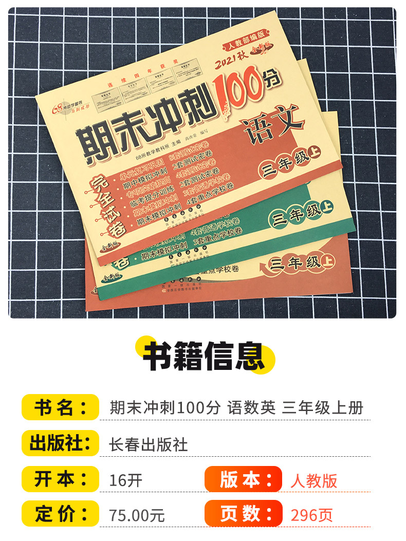 人教版三年级上册全套冲刺100分,语数英全套,大字开本,印刷清晰,巩固知识,梳理重点,题型丰富,内容全面,老师推荐,让孩子轻松考个好成绩!