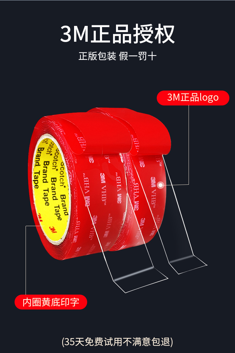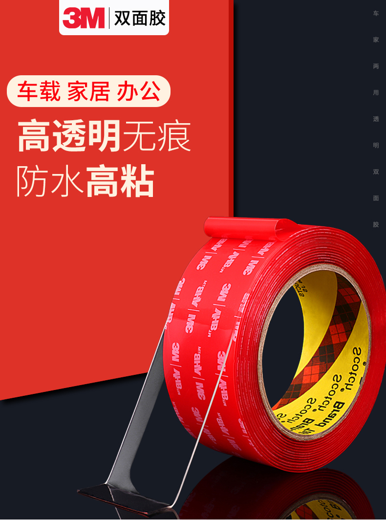 【正版授权,不粘包退】高强防水耐高温,撕下无痕,延展性好。车家多用双面胶,免除打孔,适用于更多地方使用。官方防伪认证,世界500强企业。实惠不容错过。