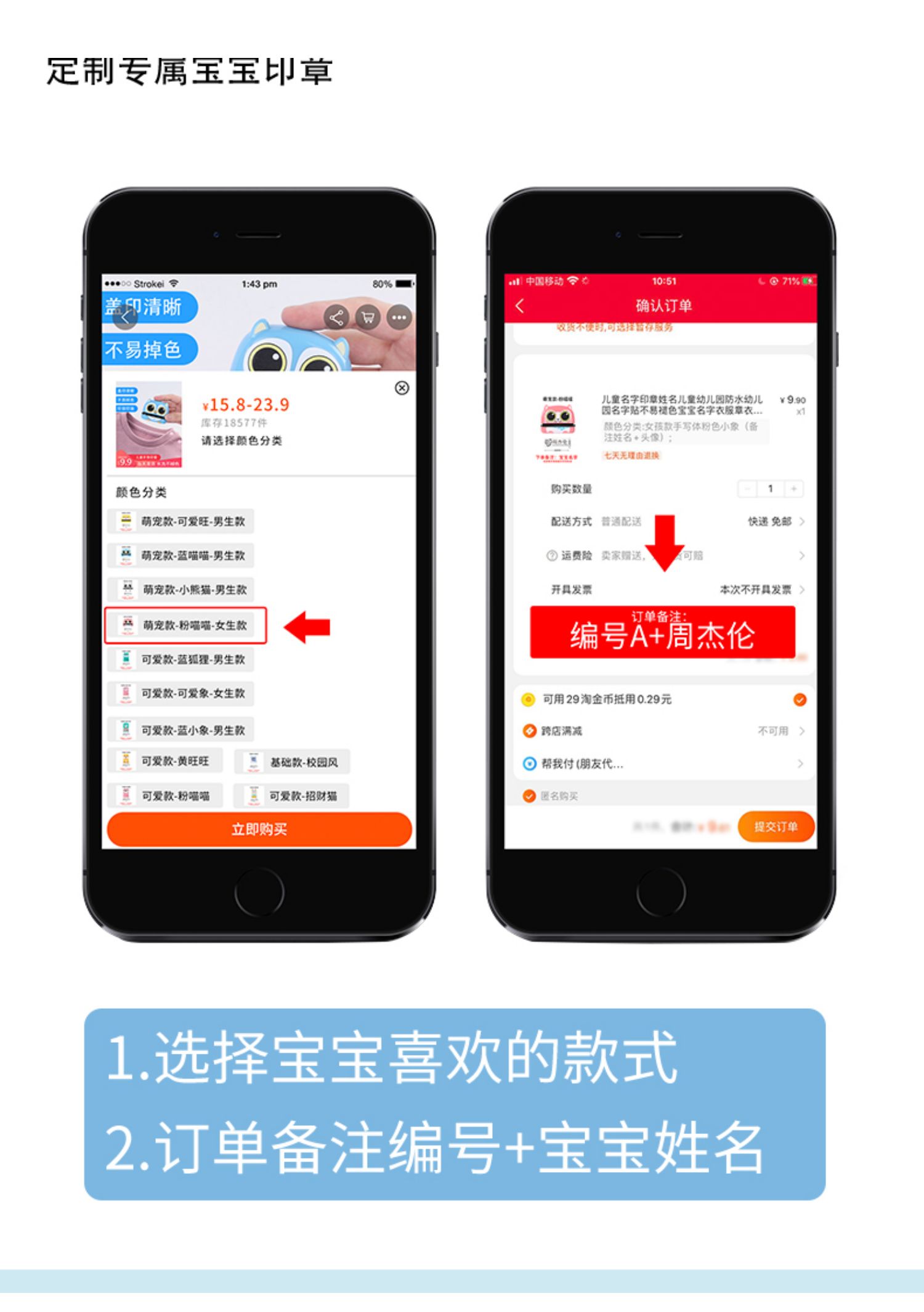 【奥丁诺】儿童姓名印章防水不褪色识别字帖,【券后价3.9元】可印4000次,下单标注宝宝姓名!多种样式和模板可选!可印在口罩衣服书包上,高清印字,耐水耐洗,添加油墨方式,操作简单便捷。