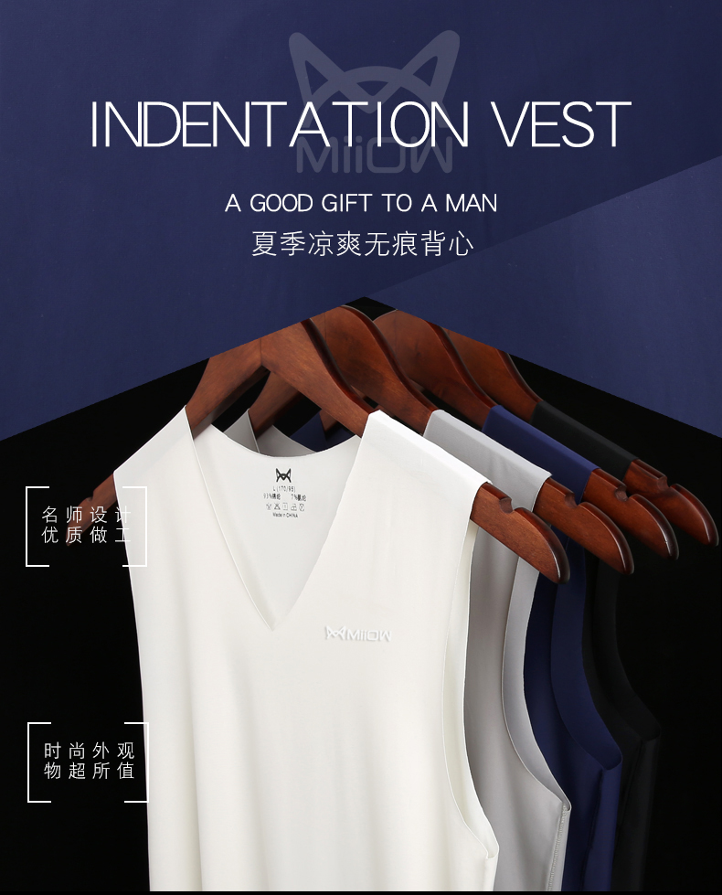 猫人高端品质背心,精选优质面料,冰丝清爽,细腻光滑,舒适无痕,弹力修身,简约大气,单穿内搭都超有型,多色任选