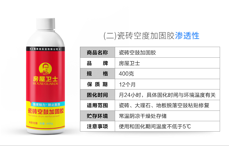 快速解决瓷砖空鼓脱落,持久牢固与瓷砖同寿,操作简单,适应多种气候,居家必备!好品质,请认准房屋卫士旗舰店哦!