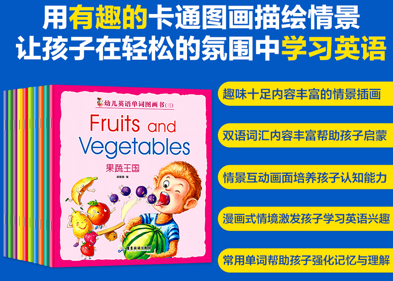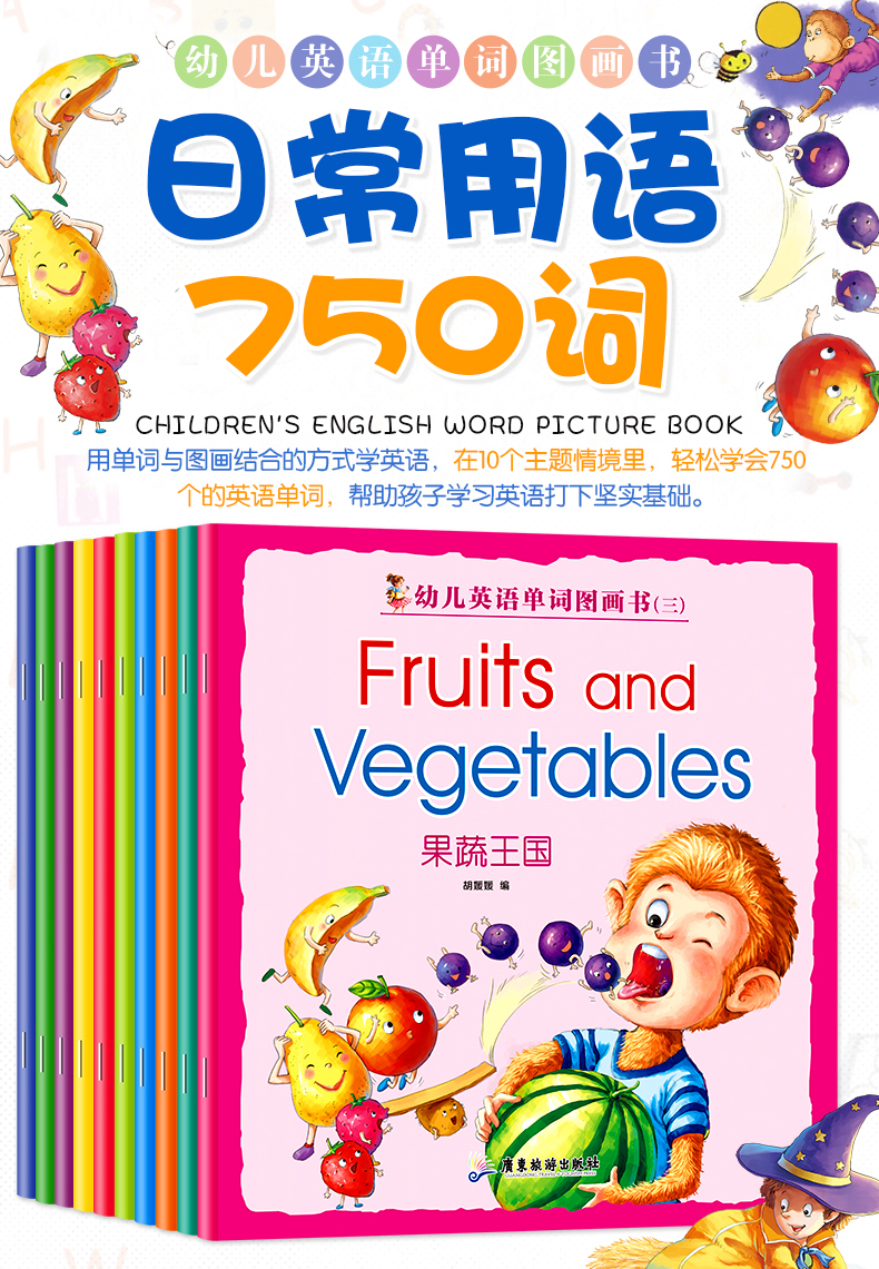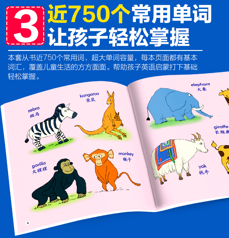 【限时5.9元秒杀10本装】孩子学英语早教必备!精美插画,日常用语750词,手机扫码美英伴读,帮孩子练习语感,让基础更巩固,图案生动有趣,由浅入深,开发大脑,提升宝宝的认知力和专注力!