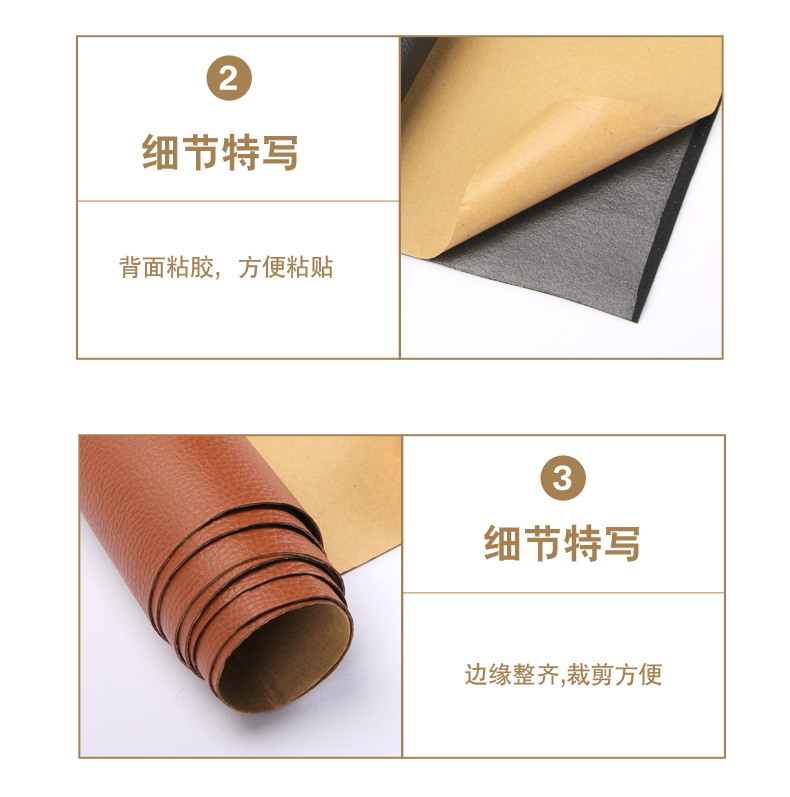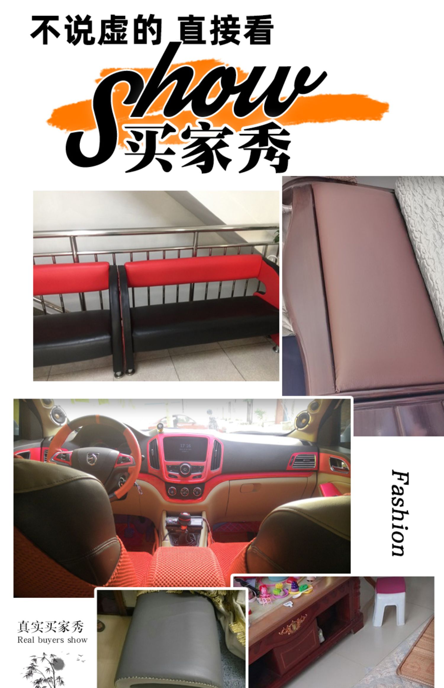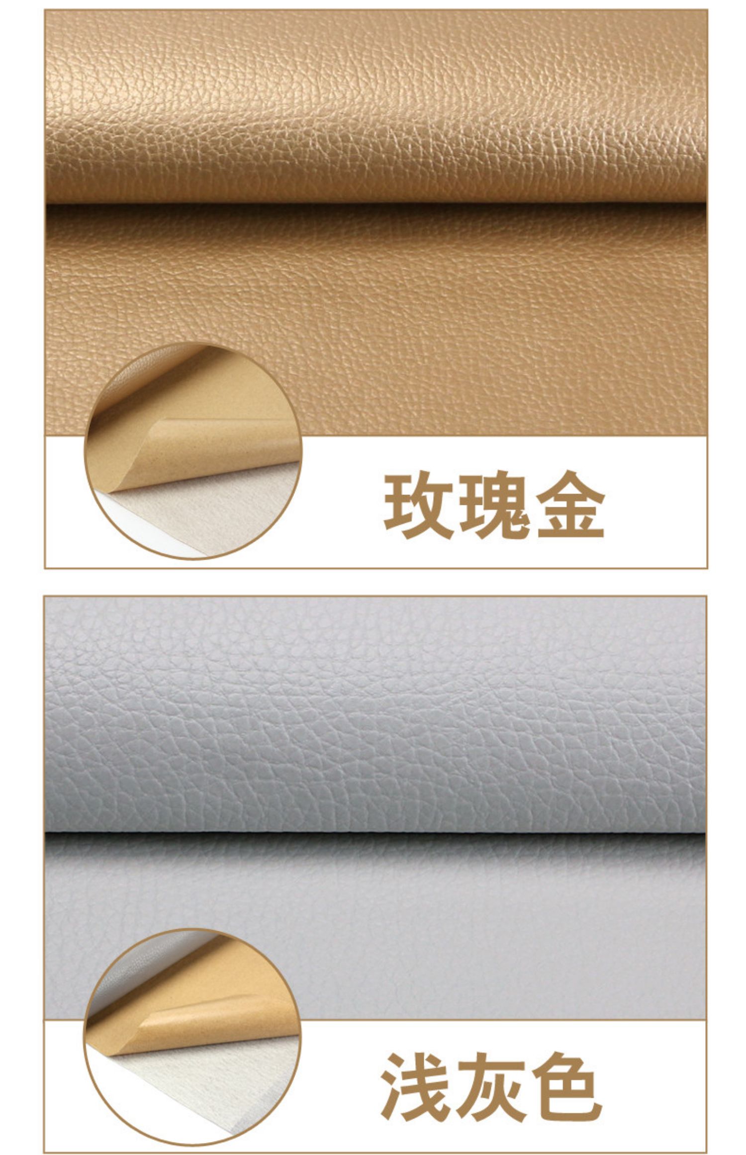 自粘皮可用于家居装饰,家装软包,汽车装饰等等。加厚背胶,自粘性强,不用担心会翘边什么的,商家现在血亏冲冲销售,速度抢了~