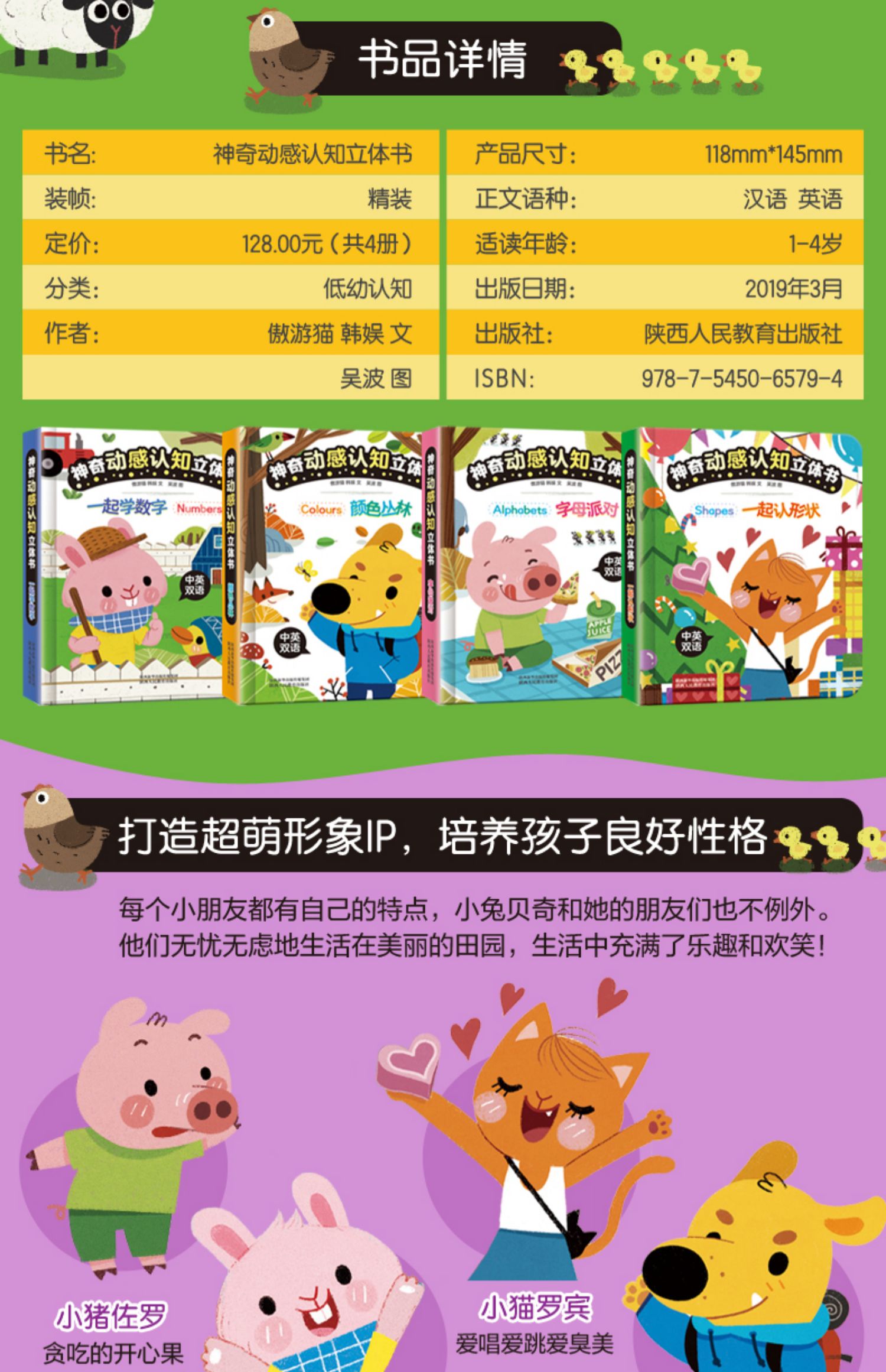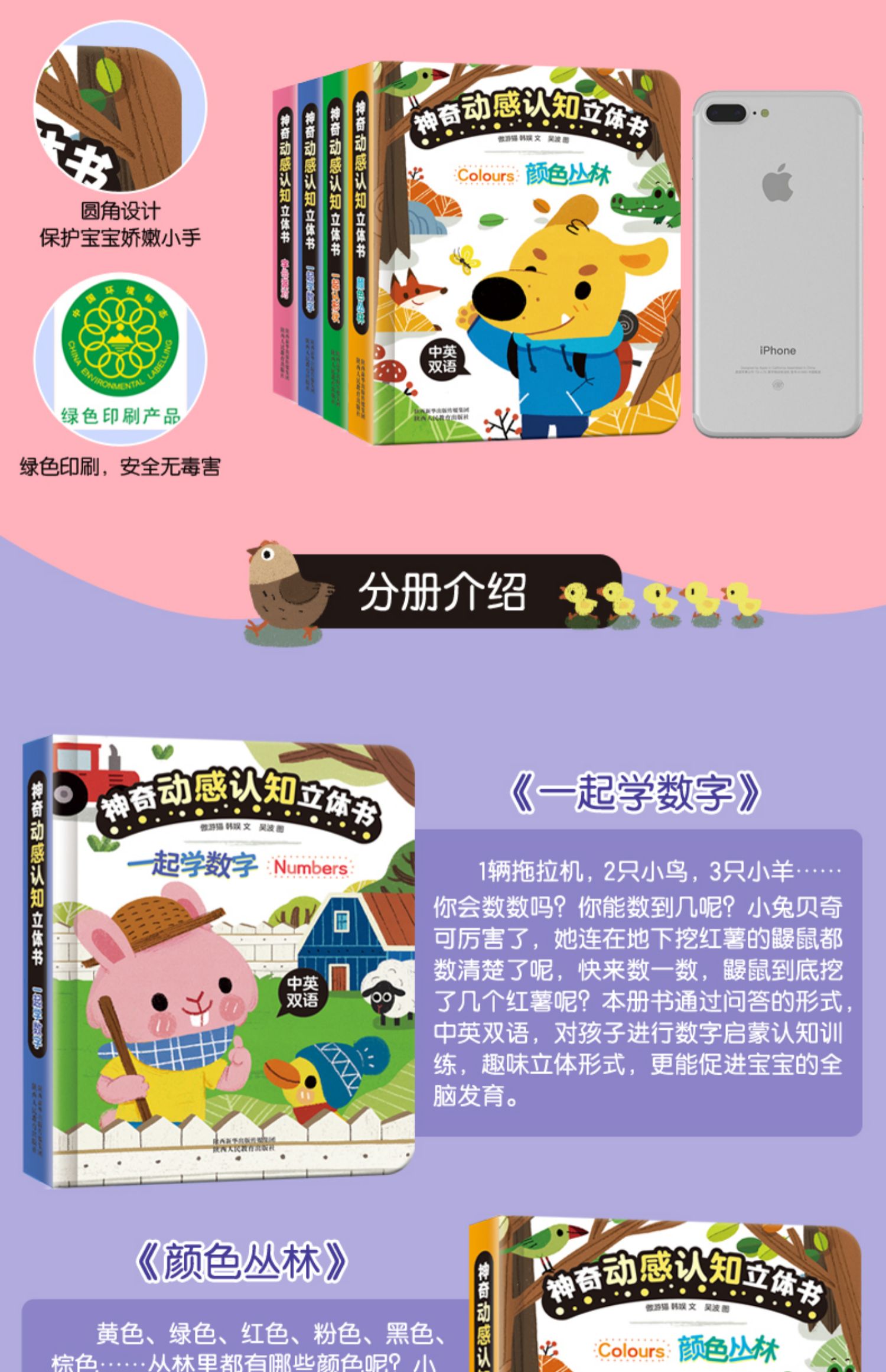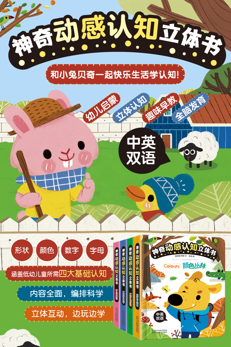 【乐乐趣旗舰店】神奇动感认知立体书翻翻书四册,中英双语相结合,趣味早教,发挥宝宝的大脑发育,让宝宝边玩边学。【赠运费险】