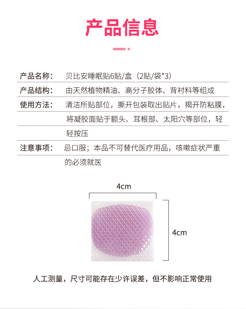 【贝比安药店同款】小儿宝宝睡眠贴~助力宝宝晚上好睡眠~不伤皮肤,透气散热无纺布,更好睡眠,可适用于:新生儿或是1岁至6岁,药监局许可认证发售~【赠运费险】