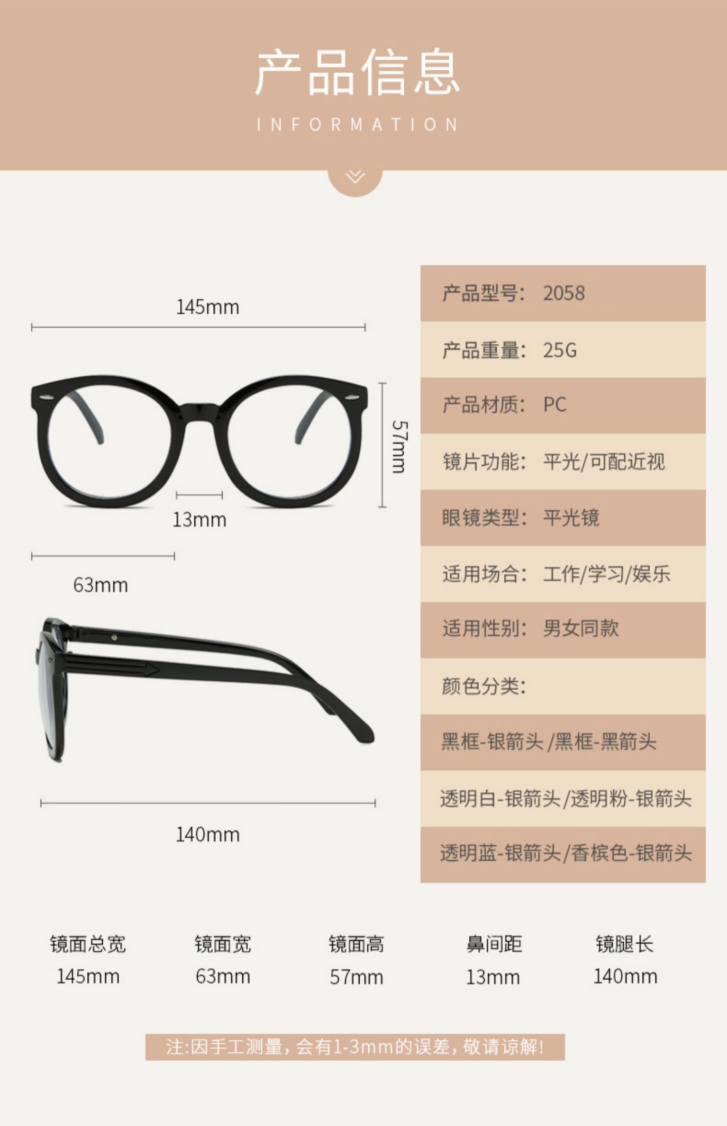 【显脸小神器】网红同款,复古大框镜框,金属点缀,更具时尚质感!无论出游还是街拍都可以!有效修饰脸型,防蓝光辐射,抵御有害蓝光!血亏冲量,速抢!!!