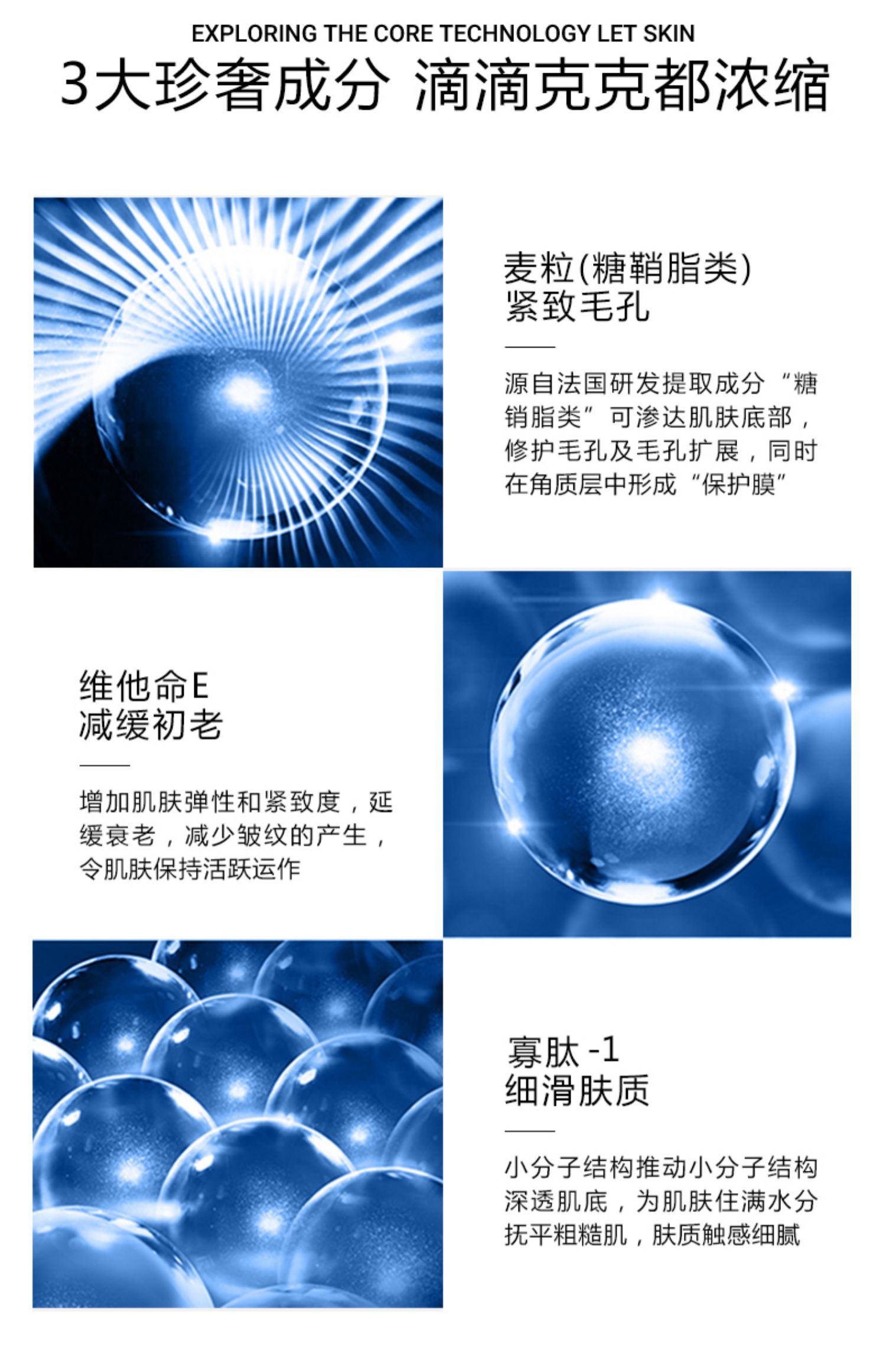 法国进口原料,麦粒精华富含透明质酸钠+维他命E+EGF,专为毛孔肌而生,补水保湿细致毛孔,淡化细纹,细腻平滑肌肤,每天一粒,重现青春肌肤,不添加防腐剂,不添加重金属,绝对安全。【赠运费险】