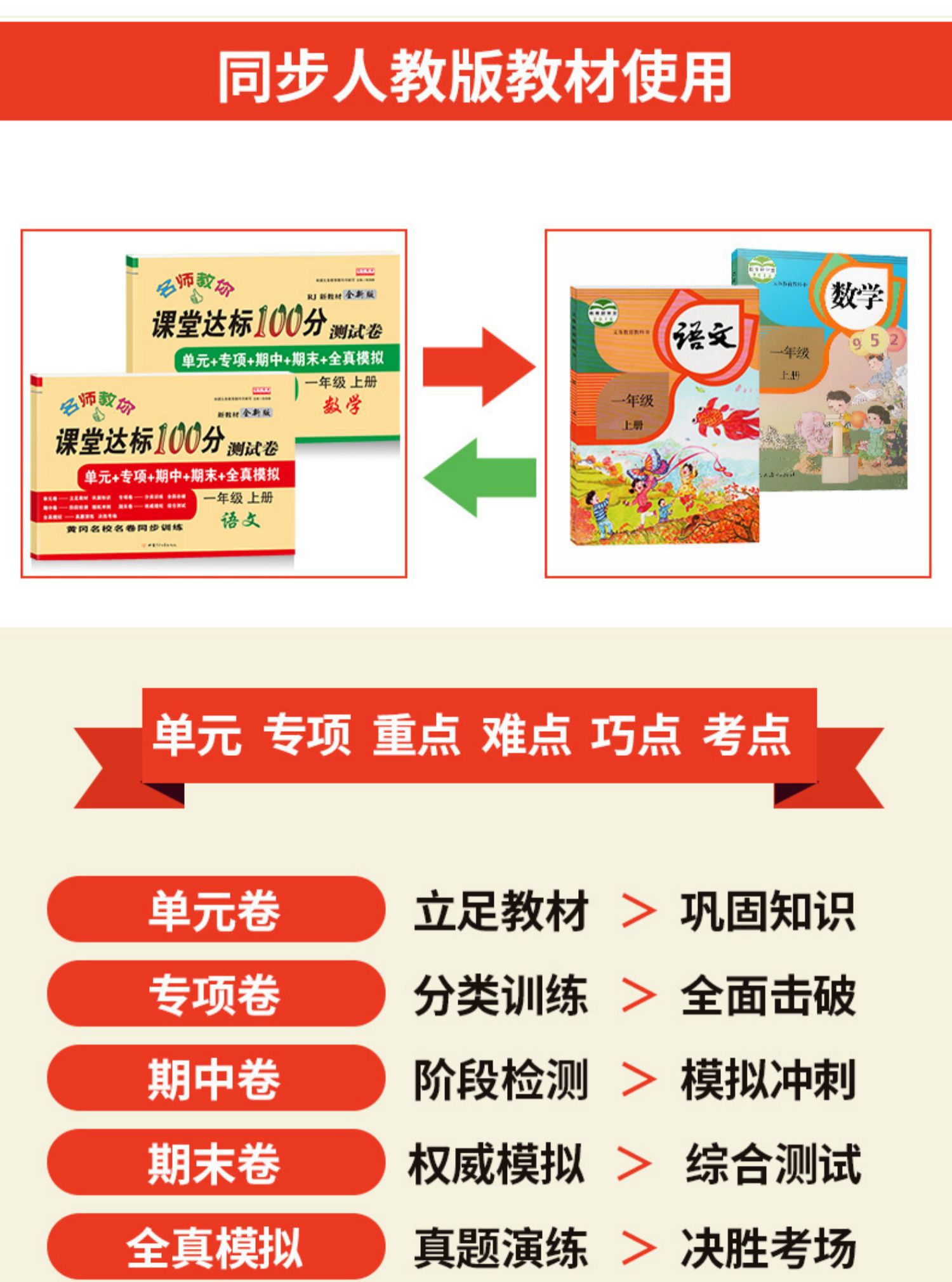 人教版教材同步试卷,各位家长们,期末考试快到啦!黄冈名校同步训练,为了孩子你需要这样一份试卷,名师便携,助力提升,印刷清晰,10W好评!手慢无!