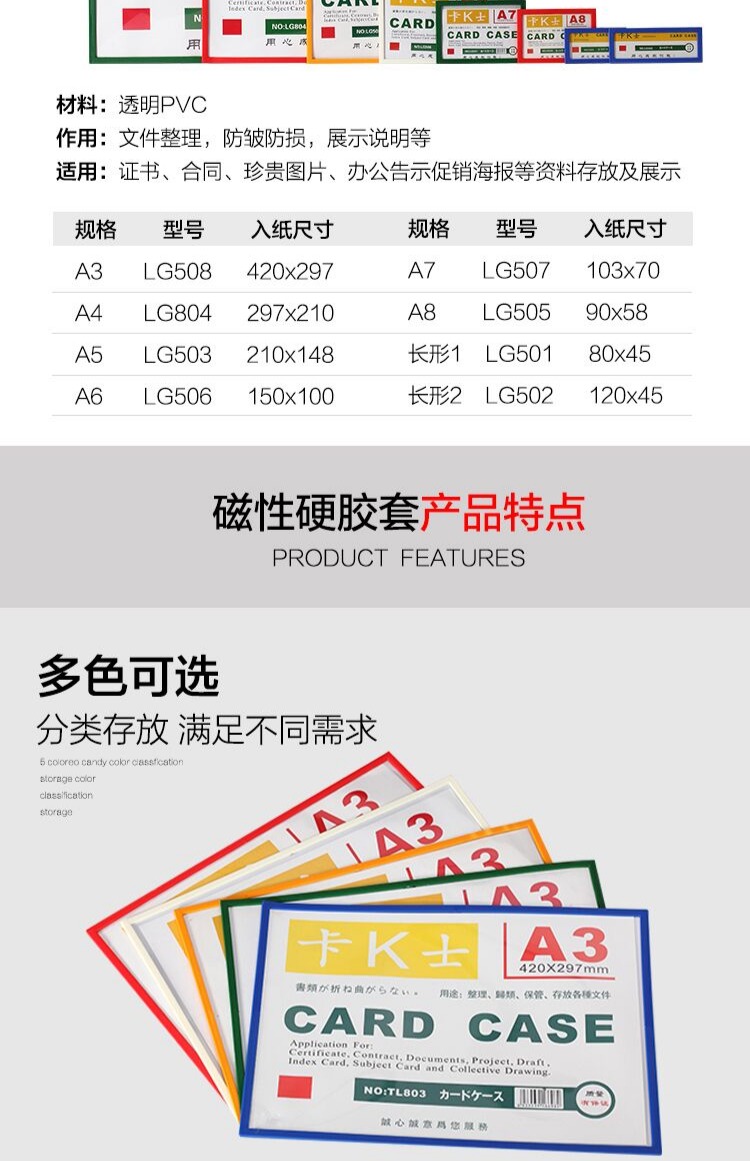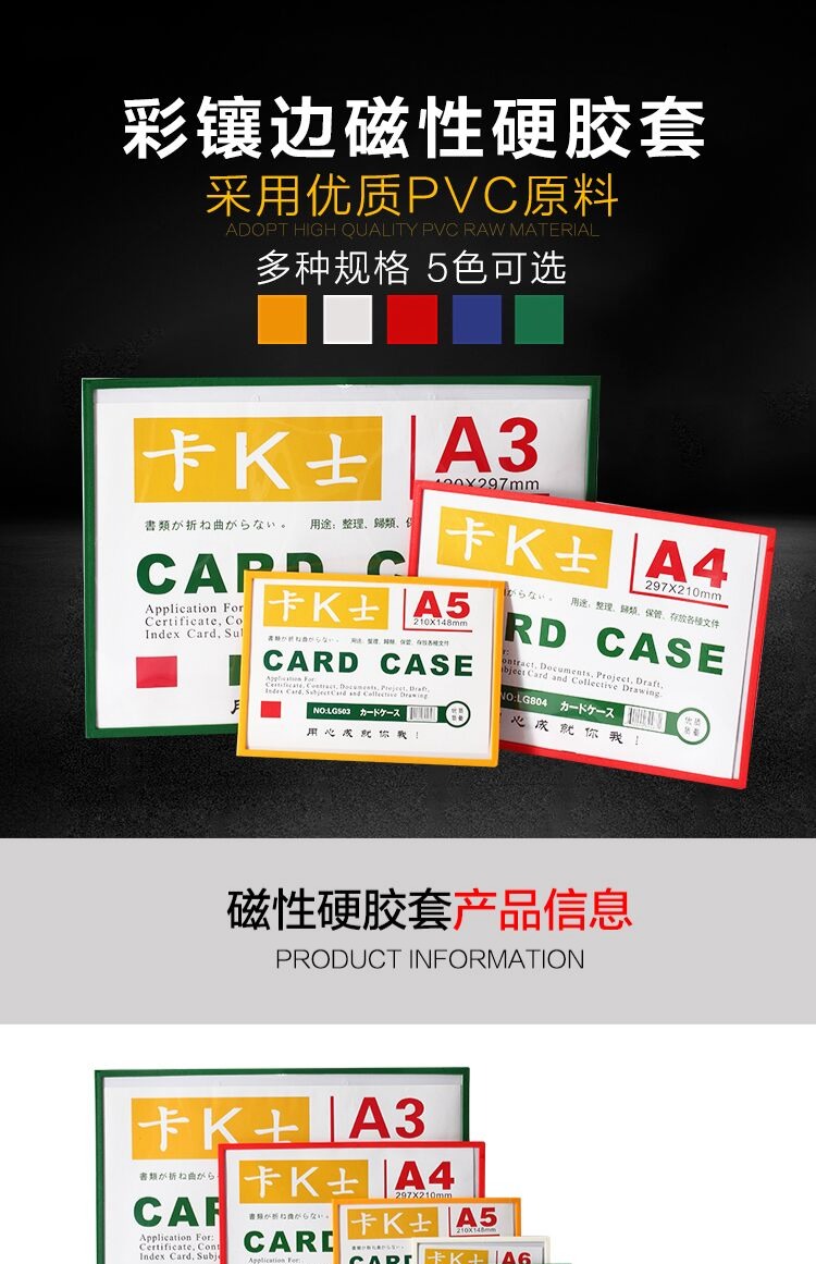 【赠运费险】金牌冠店,品质无忧!彩镶边磁性硬套,采用优质PVC材质,背面软磁贴,磁性好、更牢固,多种规格颜色可选,分类存放,满足不同需求~