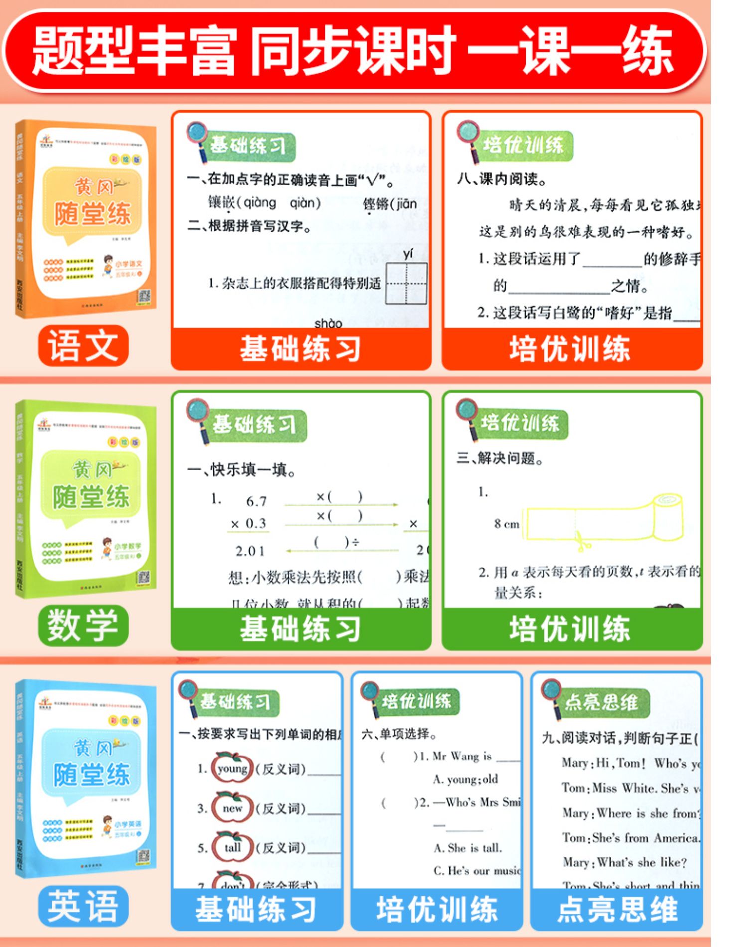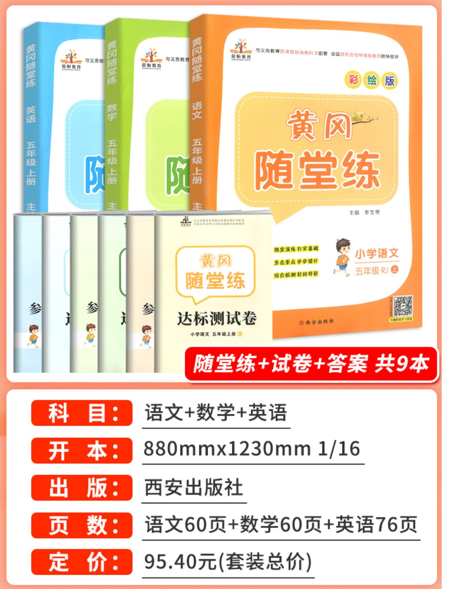 【可签到】人教版五年级上册黄冈随堂练,同步练习册,语数英可选,彩色印刷,彩色印刷,与课本同步,字迹清晰,名师出题,紧扣重点,让孩子巩固知识,学习更上一层楼~