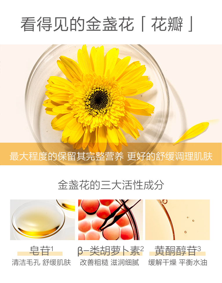 金盏花舒缓爽肤水,舒缓补水,清爽控油,补水保湿,修护维稳,收缩毛孔,看得见的金盏花【花瓣】