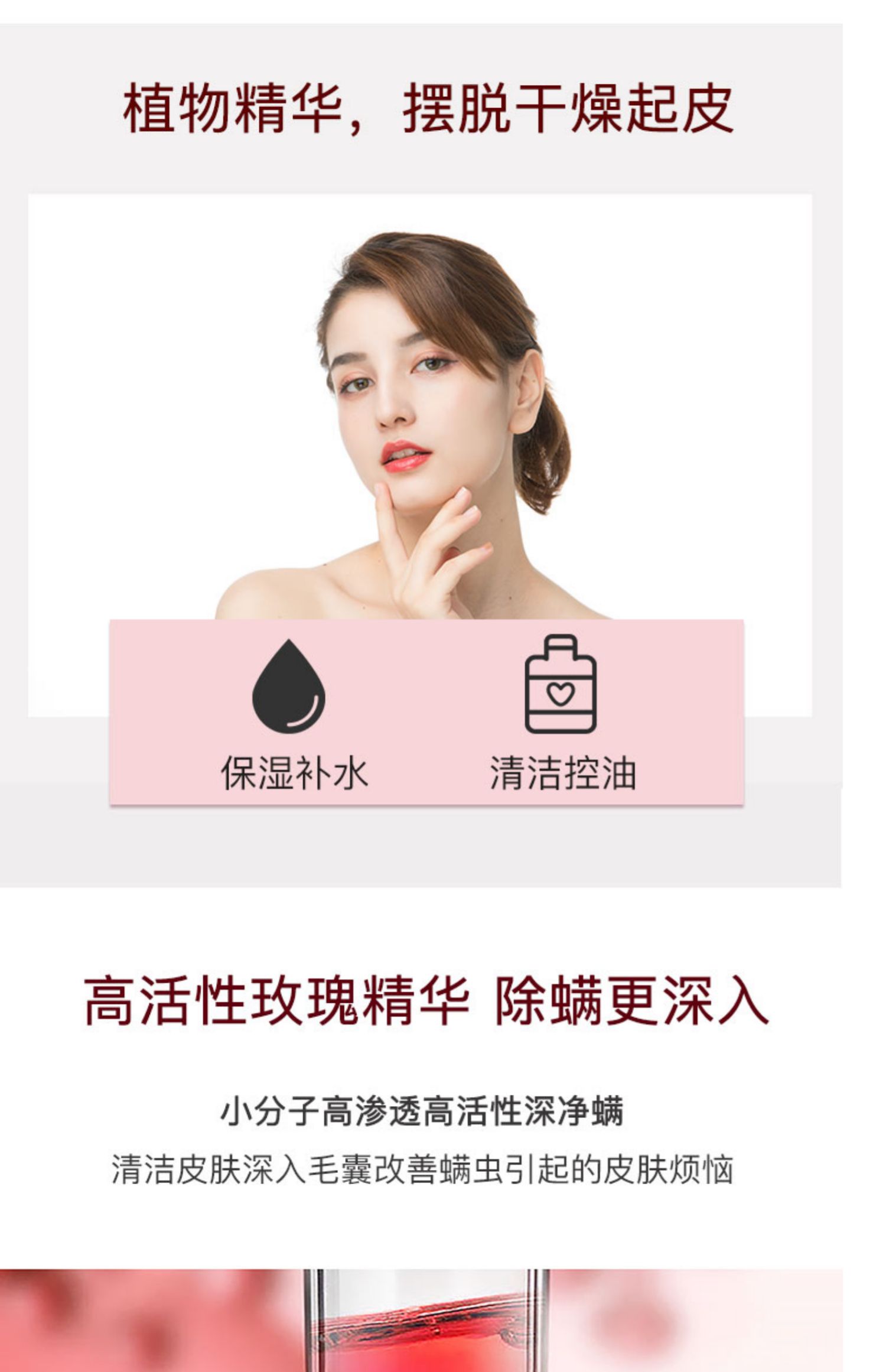 玫瑰精华+稻糠凿醇,除螨效果真心不错!当洗面奶,当卸妆膏,当沐浴露,还能做泡泡清洁面膜,由内而外改善痘痘肌,想要除螨就选它~