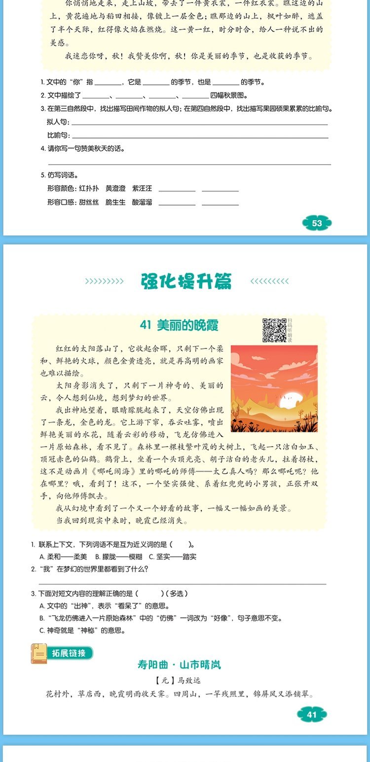 【阅读专项训练】教材课本同步,天天练,题型多样,掌握知识技能,培养学生思考能力,增强应用意识,发展创新,掌握学习方法!让您的孩子学得比别人快!【赠运费险】