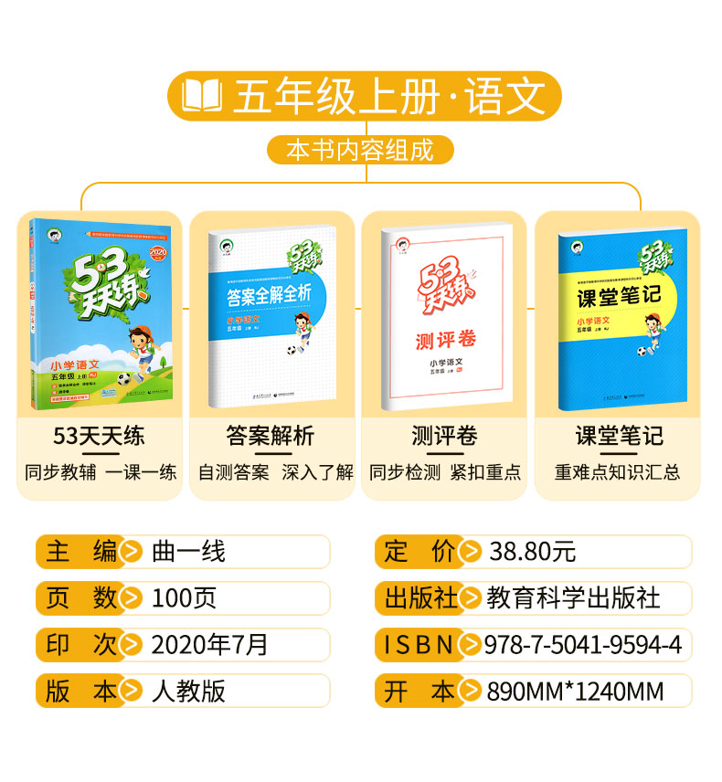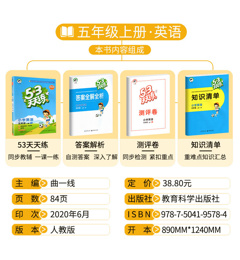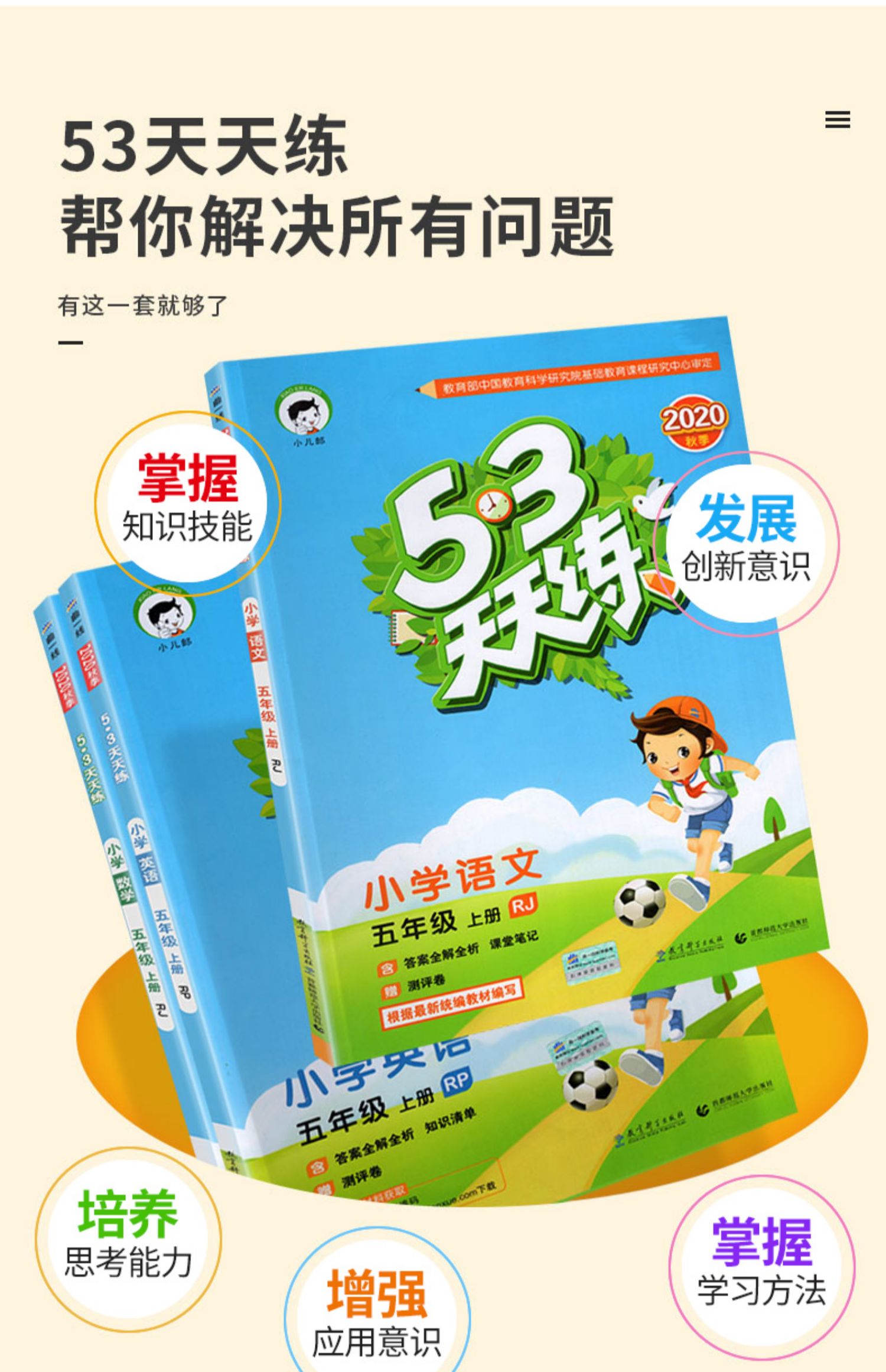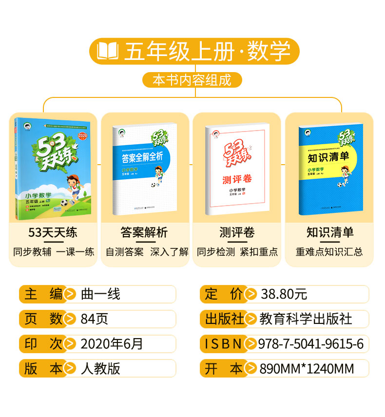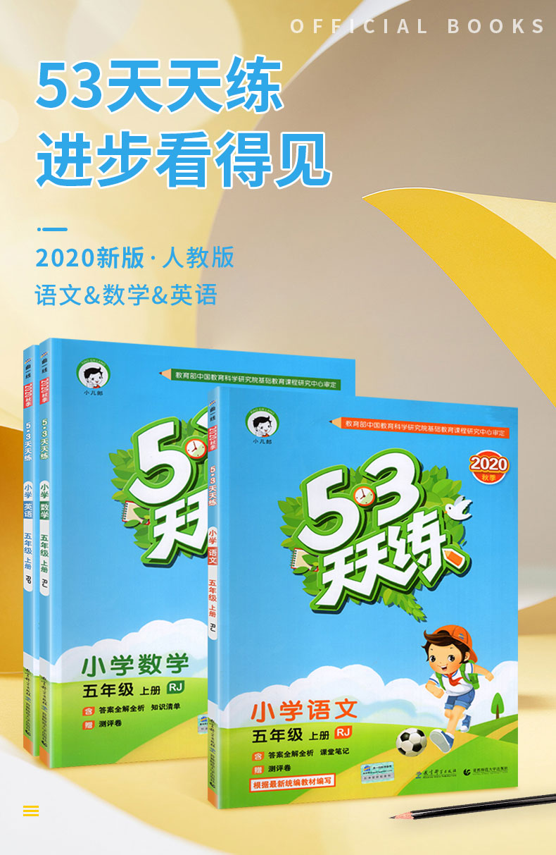 【实发12样】53天天练五年级上册语数英,官方授权!人教版,同步练习辅导,让您的孩子学得比别人快,学习更轻松~【赠运费险】