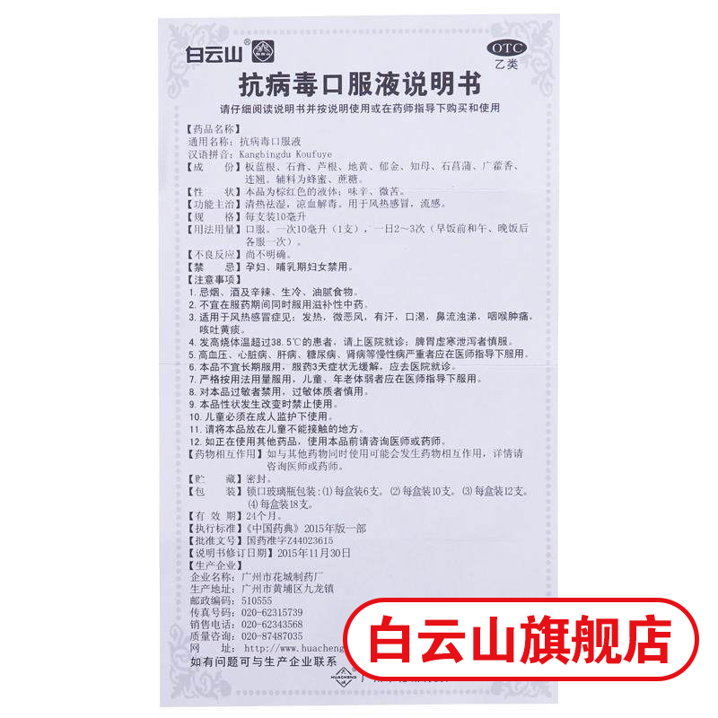 买药认准【广药白云山】,抗病毒口服液,风热感冒、清热祛湿、凉血解毒,家中常备!限时福利,值得囤~
