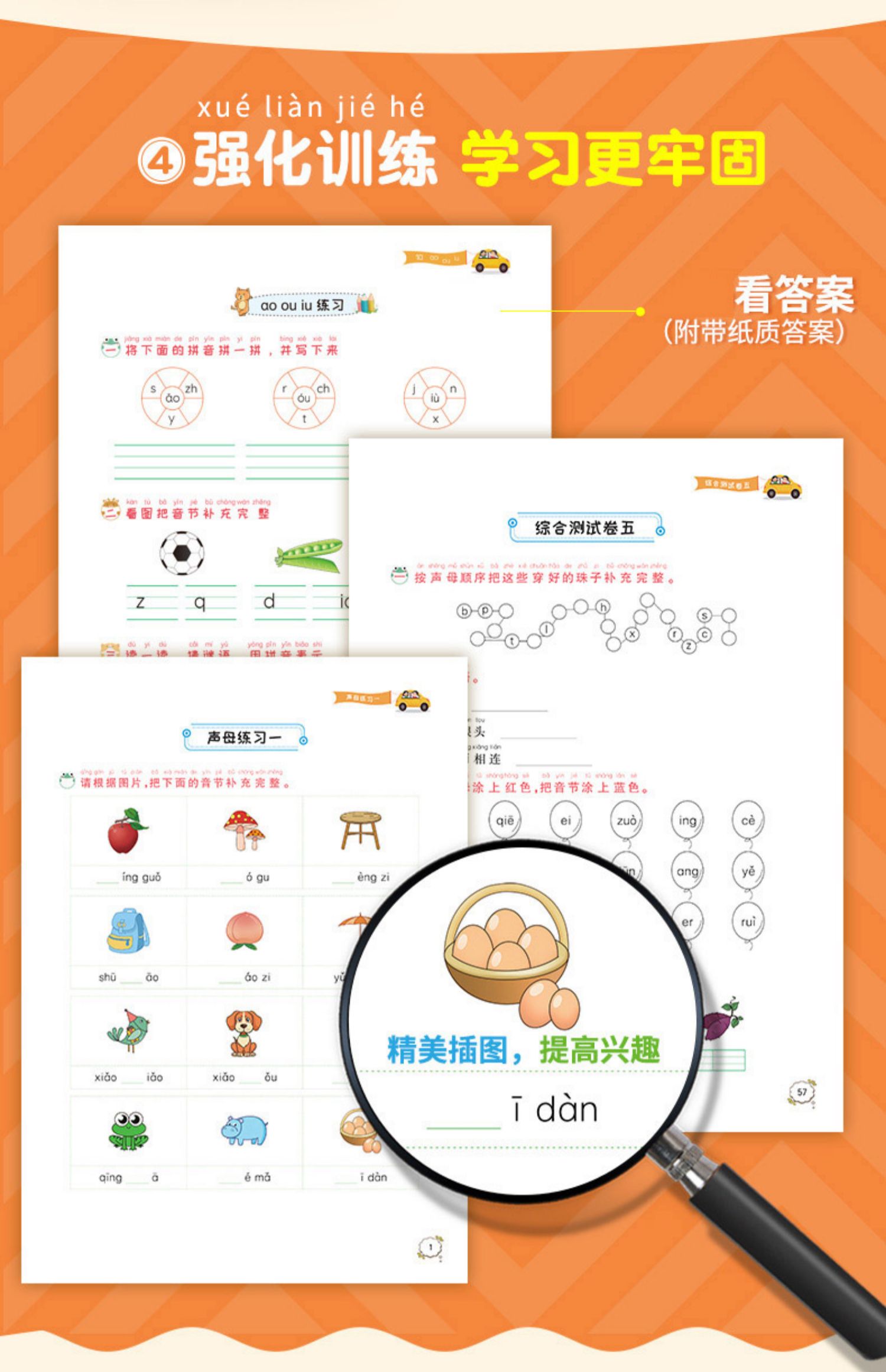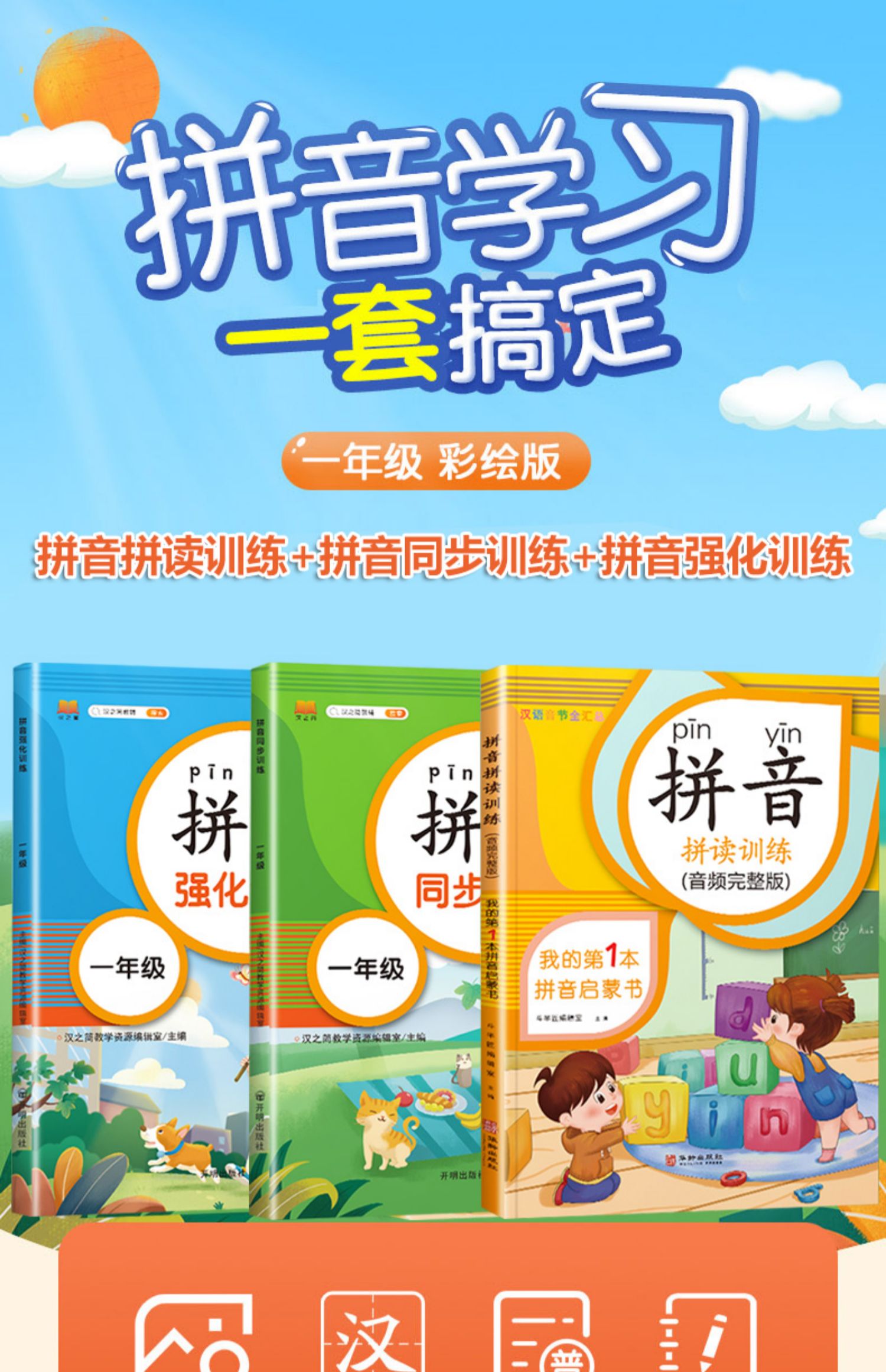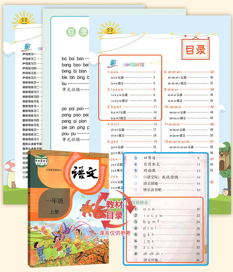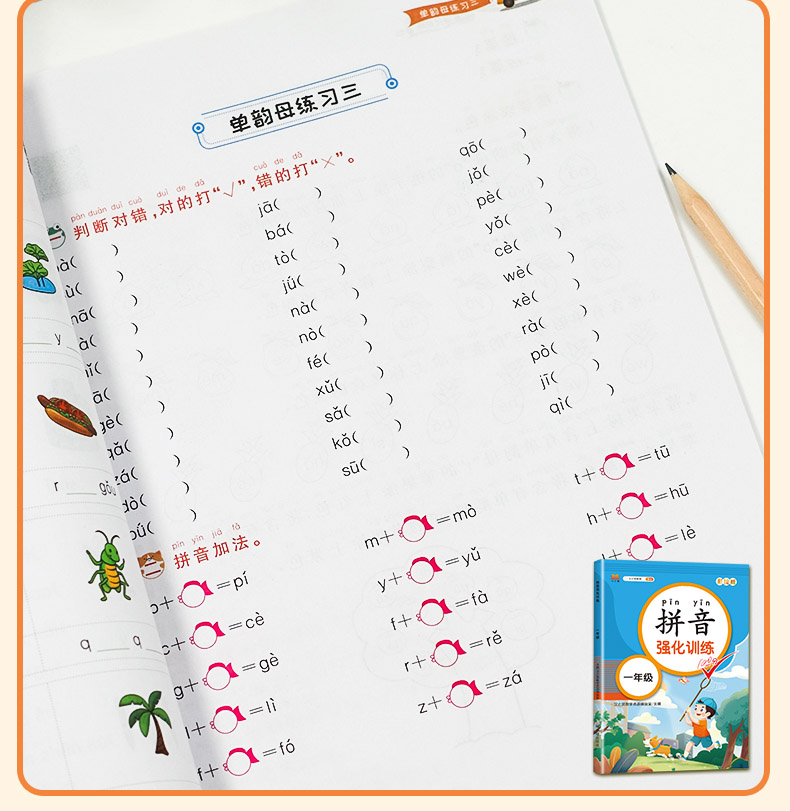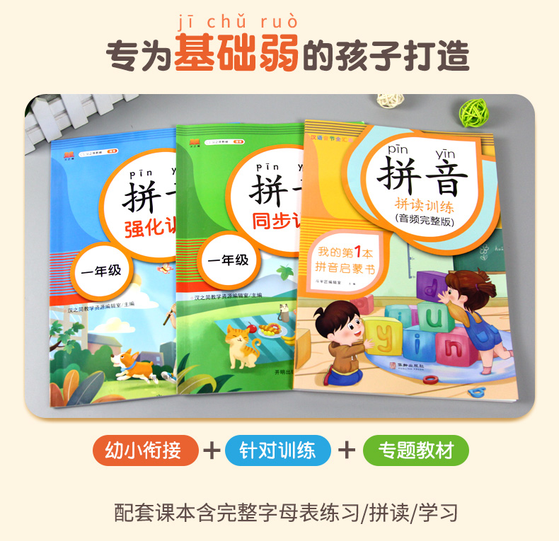 一年级拼音基础课练人教版,拼读训练,题量丰富,难度衔接过渡流畅,针对性训练,边学边练帮助孩子稳步提升,轻松学好拼音~