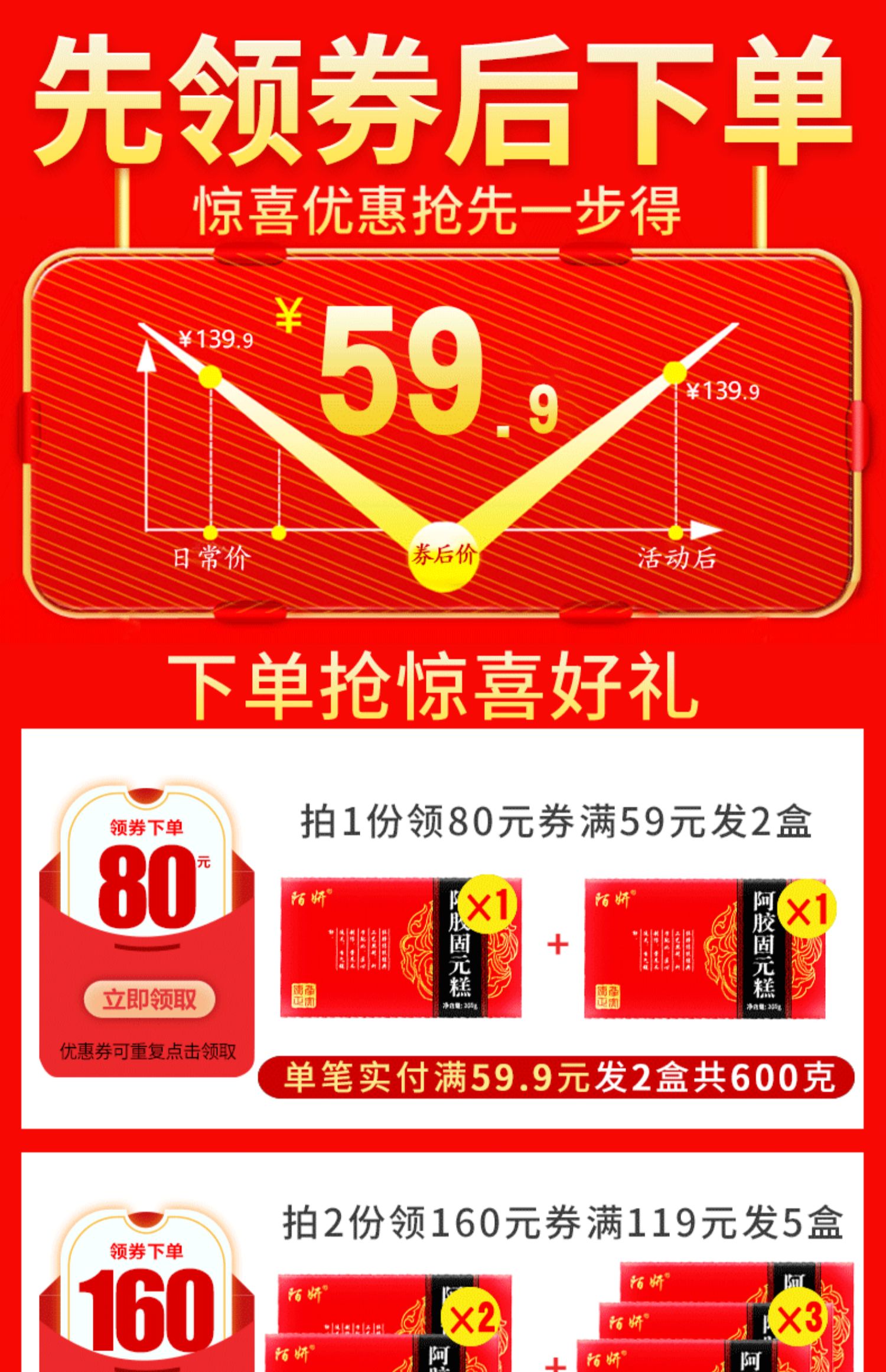 精选东阿阿胶+核桃仁+红枣等滋补药材,口感香醇,补气补血,皮肤细腻有光泽!年底巨亏!趁活动赶紧换号囤!
