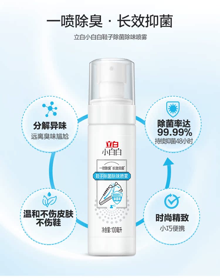 鞋子太臭好尴尬,立白除臭喷雾帮您解决难题,100ML只需19.9元,汗脚必备,夏天脚汗大,脚臭喷一下就解决了!
