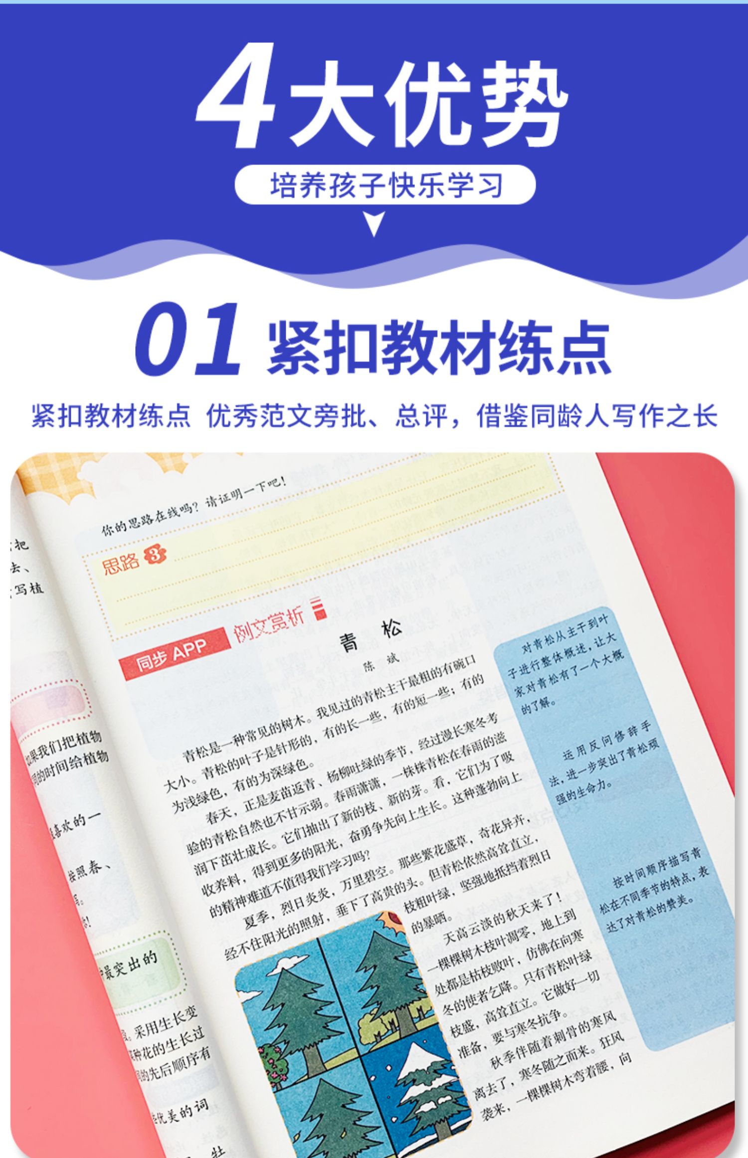 【送作文本1本】同步教材2-6年级任选!快速提高孩子写作水平,轻松拿高分,海量优秀范文+案例赏析!