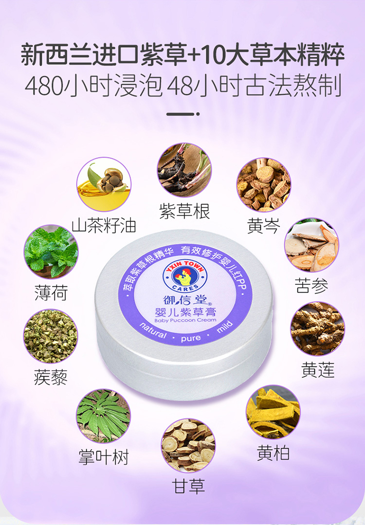 御信堂母婴品牌,线下各大母婴店有售,紫草膏专业修复红屁屁,超市40元一盒!咱们才卖9.9一盒!可止痒,可消包!湿疹,痱子,全家都能用!比花露水还管用、纯植物提成更健康~
