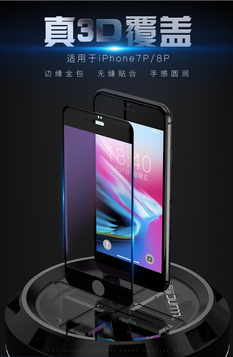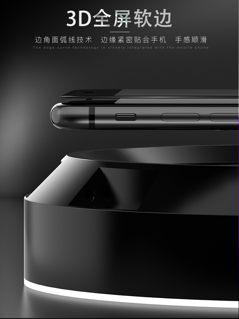 新3D全曲面全玻璃,一体全玻璃,全屏覆盖不进灰,二次强化,不进灰,疏水疏油,防指纹,曲面软边,防刮花,30天只换不修!