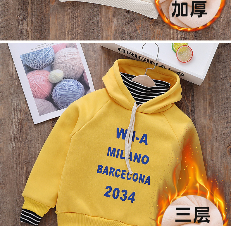 【多色可选】加绒卫衣儿童加厚冬装,2019新款洋气连帽保暖上衣,加绒加厚款,经典潮流,质感细腻,具有超凡的柔顺度和柔肤性,裸穿也很舒服。