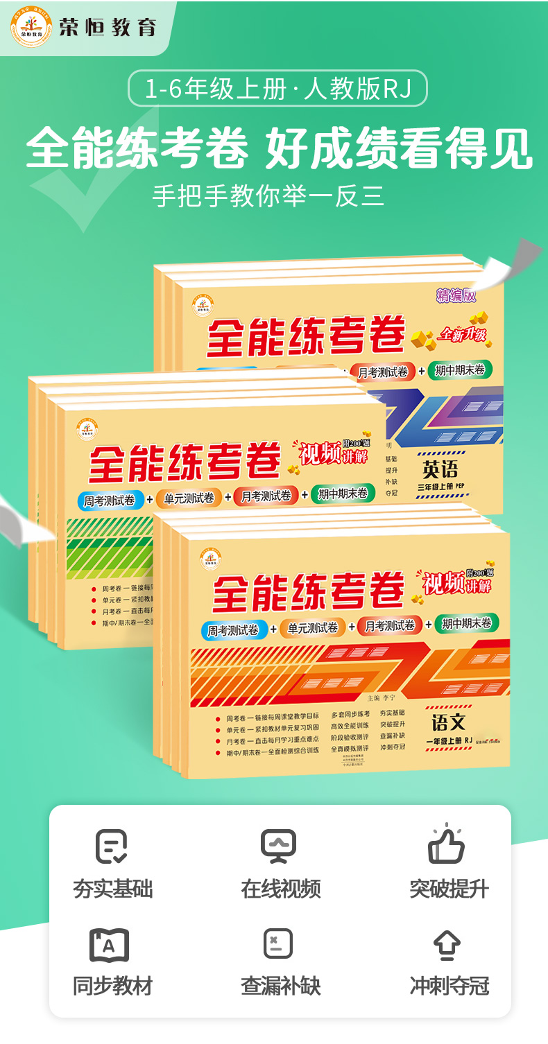 【可撸签到】人教版教材同步试卷,各位家长们,期末考试快到啦!黄冈名校同步训练,为了孩子你需要这样一份试卷,名师便携,助力提升印刷清晰!