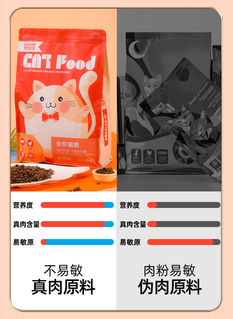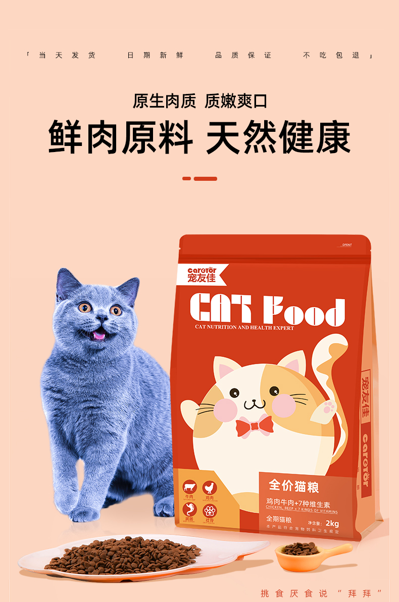 【萌宠必备】宠友佳鲜肉配方猫粮,成猫幼猫通用,真鲜肉,4种口味,营养干饭不挑食,增强抵抗力,营养易消化,促进健康生长。