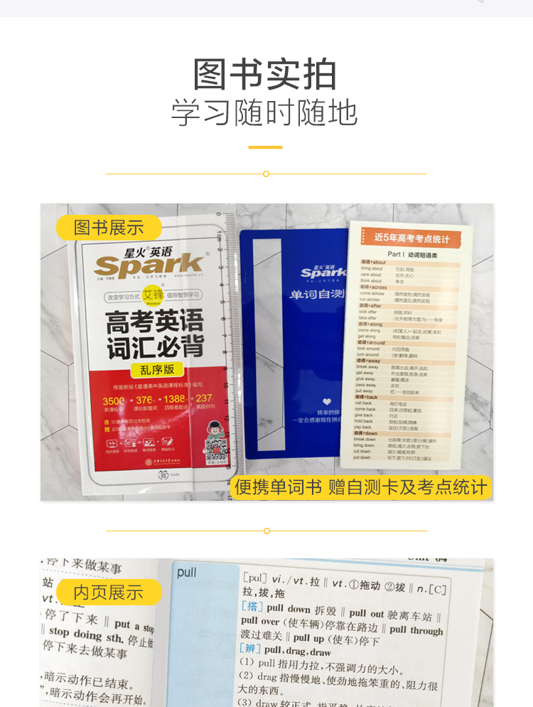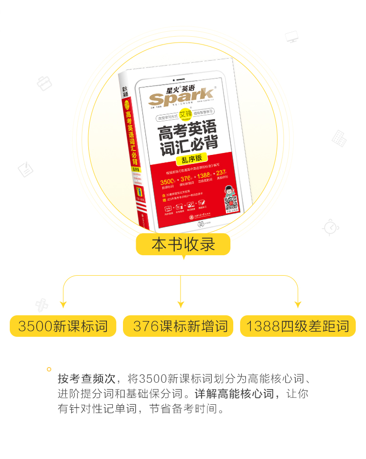星火高考英语词汇必备,3500个新课标词+376个课标新增词+1388四级差距词+237真题例句,速判逻辑,抓住关键,助你“下笔如有神”!